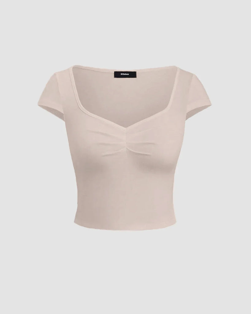 Checkered Ruched Sweetheart Neck Half Sleeve Top