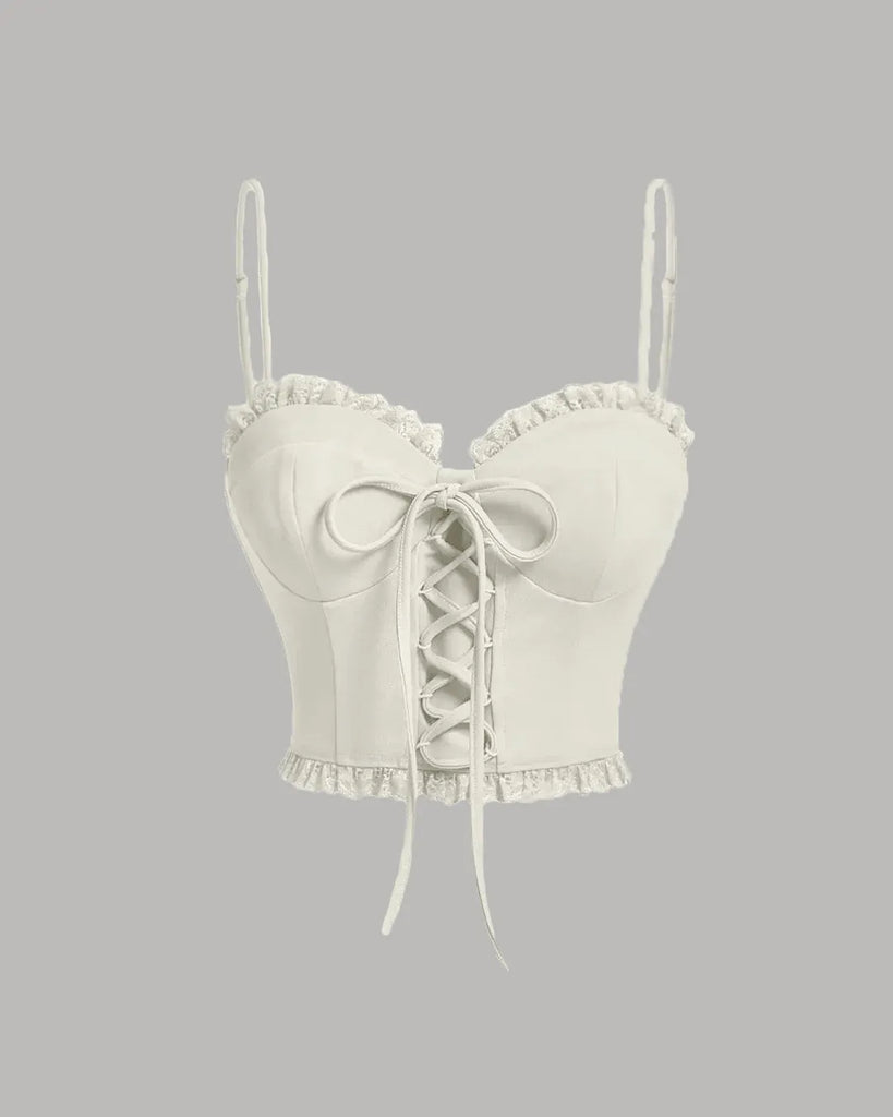 Sweetheart Neckline Knotted Cami Top & Mid Rise Wide in Mocha