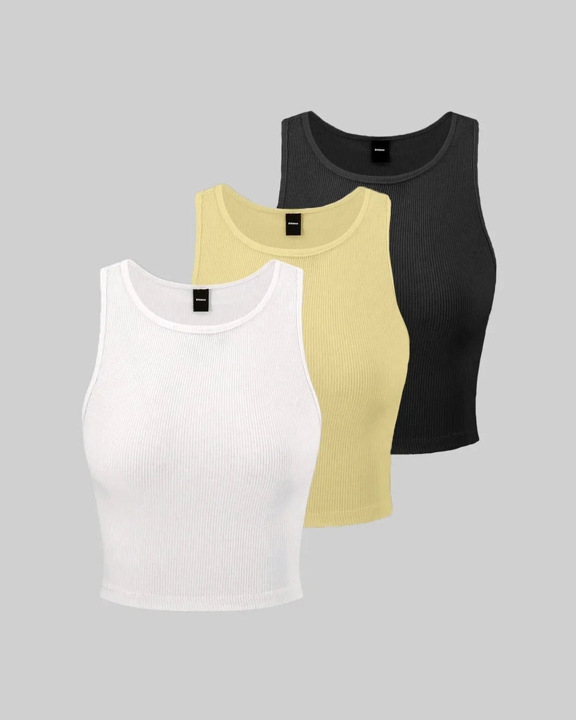 Solid Color Slim Fit Halter Neck Crop Top in Beige