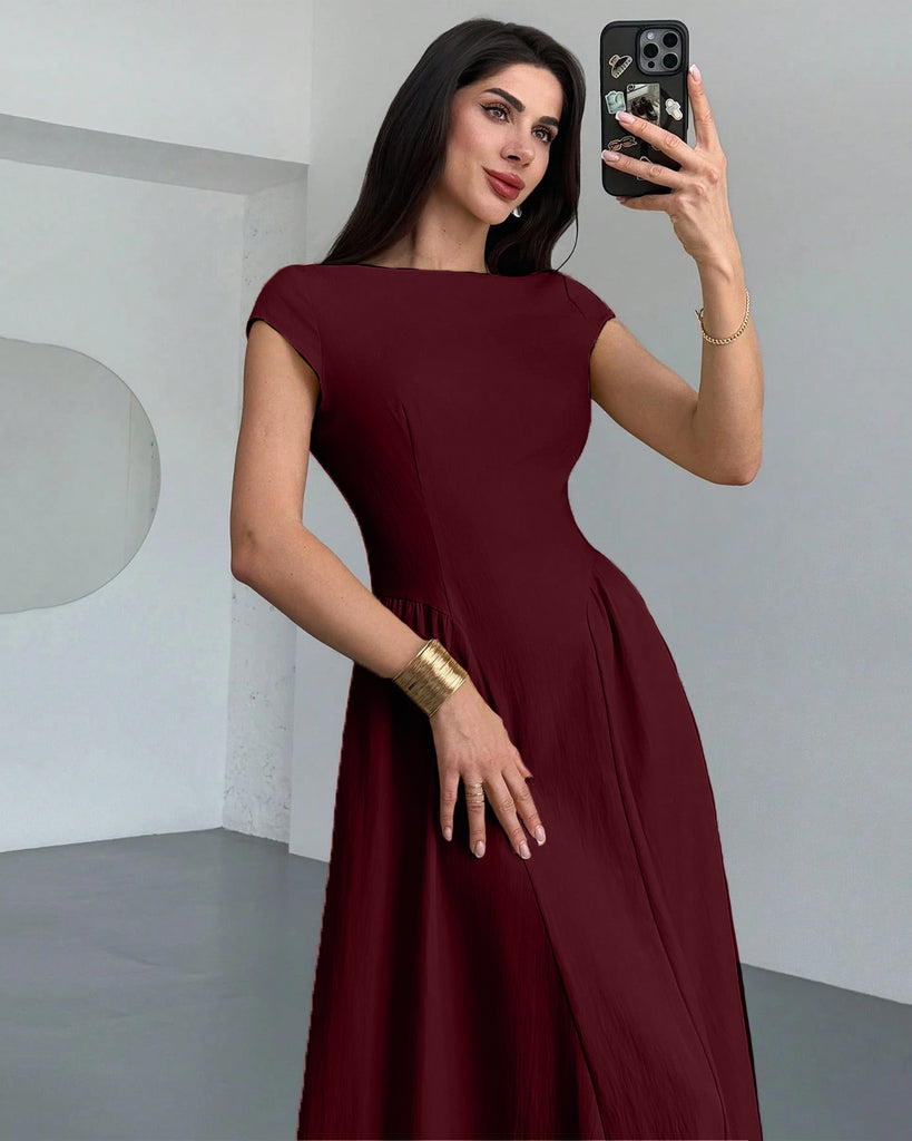 The Boat Neck Flared Hem Midi Dress in Maroon is all about a soft, elegant shape that feels easy to wear. The clean boat neckline gives a polished look, while the fitted waist and gentle flare create a smooth and flattering outline. This Midi Dress in Maroon is perfect for days when you want something simple yet graceful.