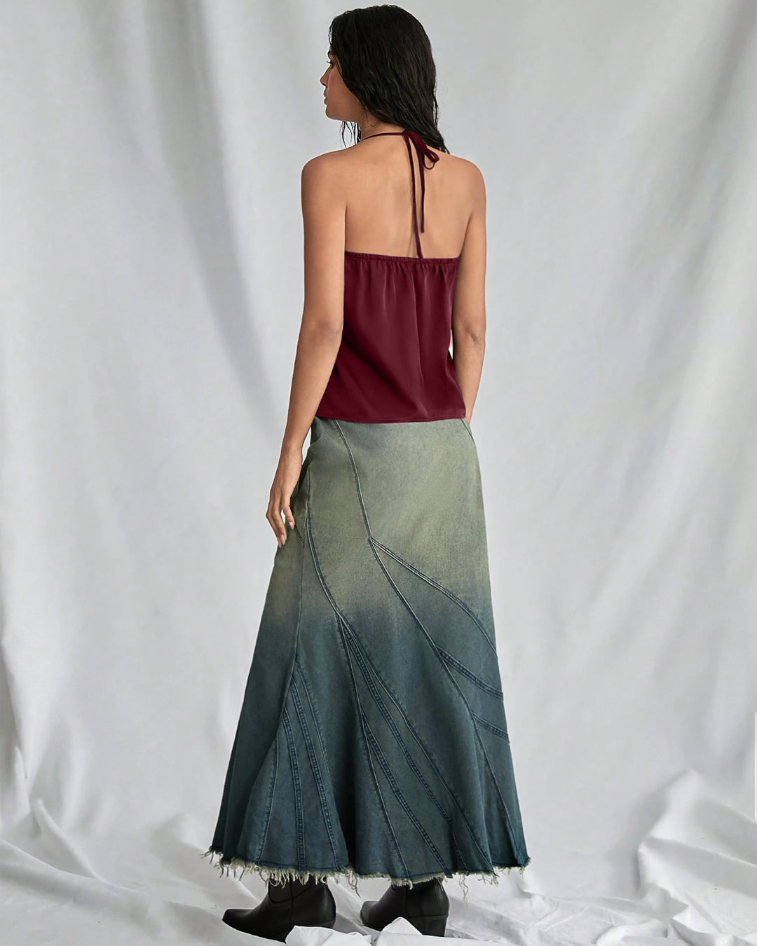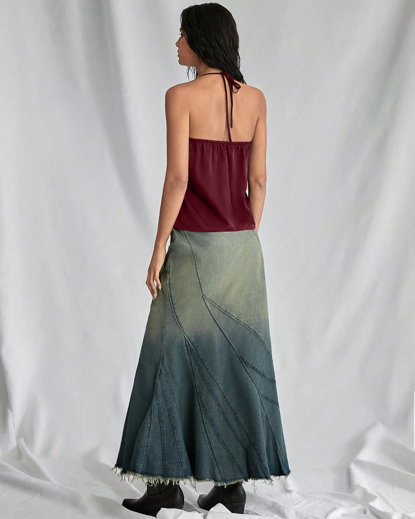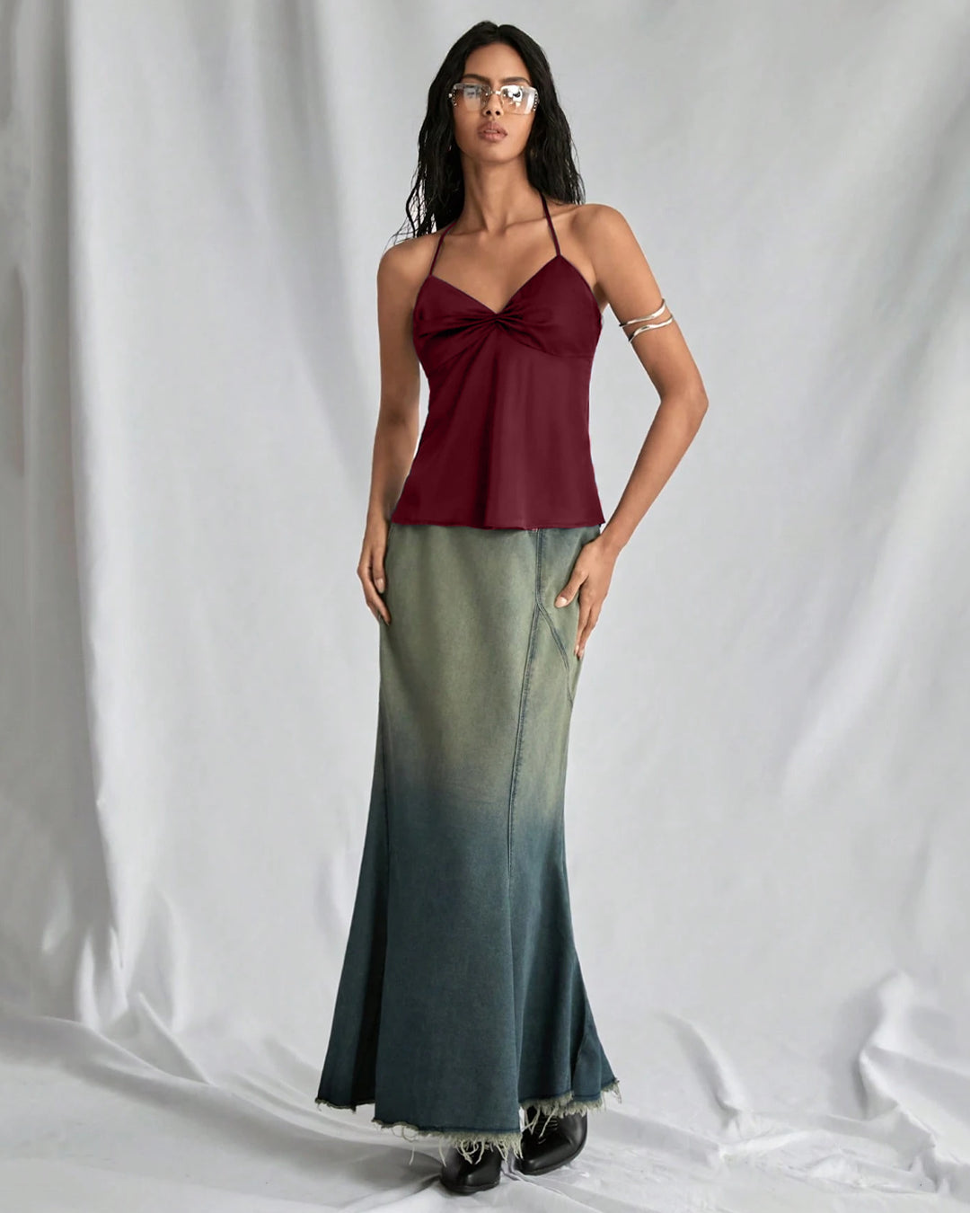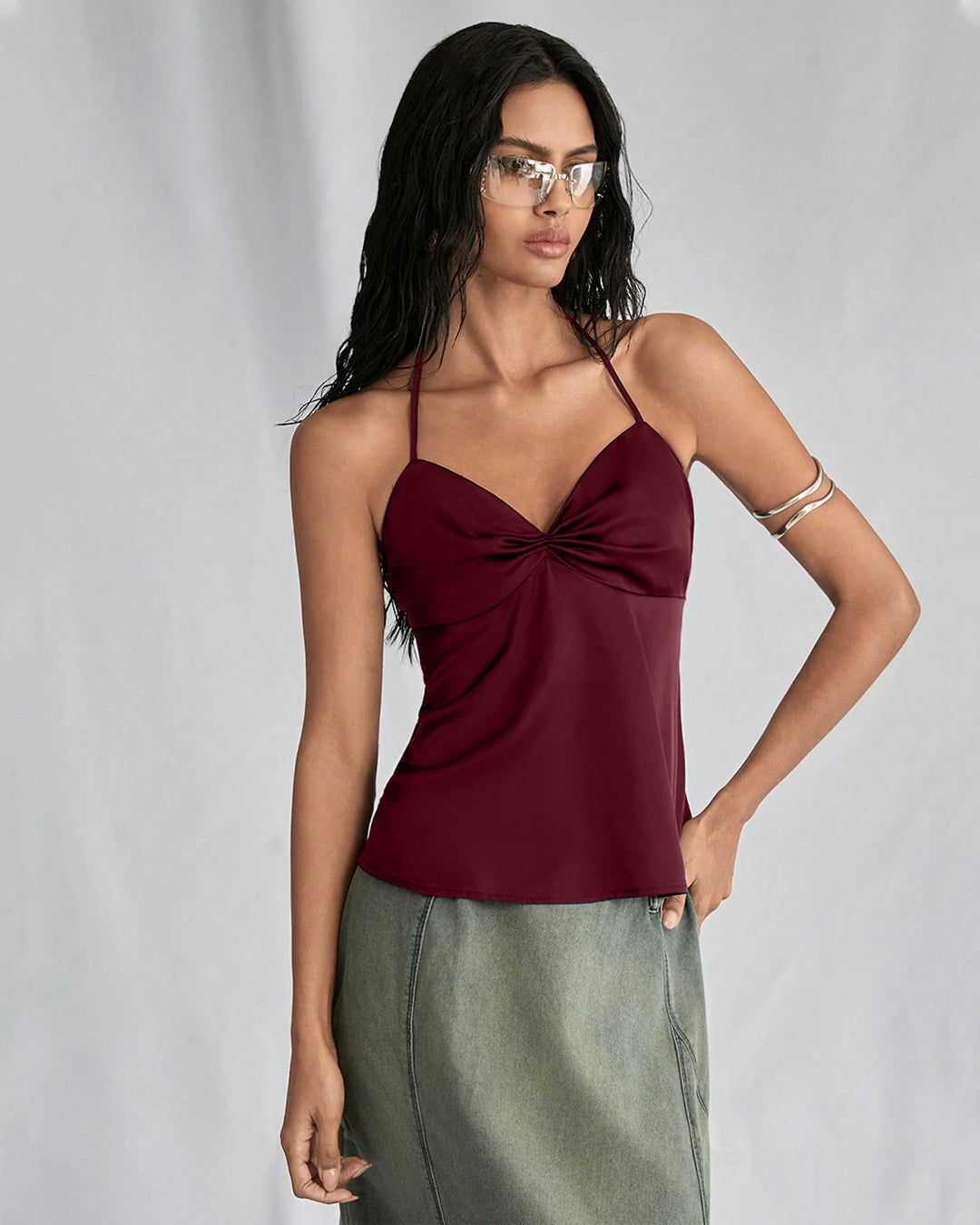 Halter Neck Twist Front Sleeveless Top in Red is giving main character energy. With a sleek halter tie and twist-front detail, this sleeveless top in Red is all about flattering cuts and satin-y flow that moves with you. The deep neckline brings that soft glam energy without doing too much.