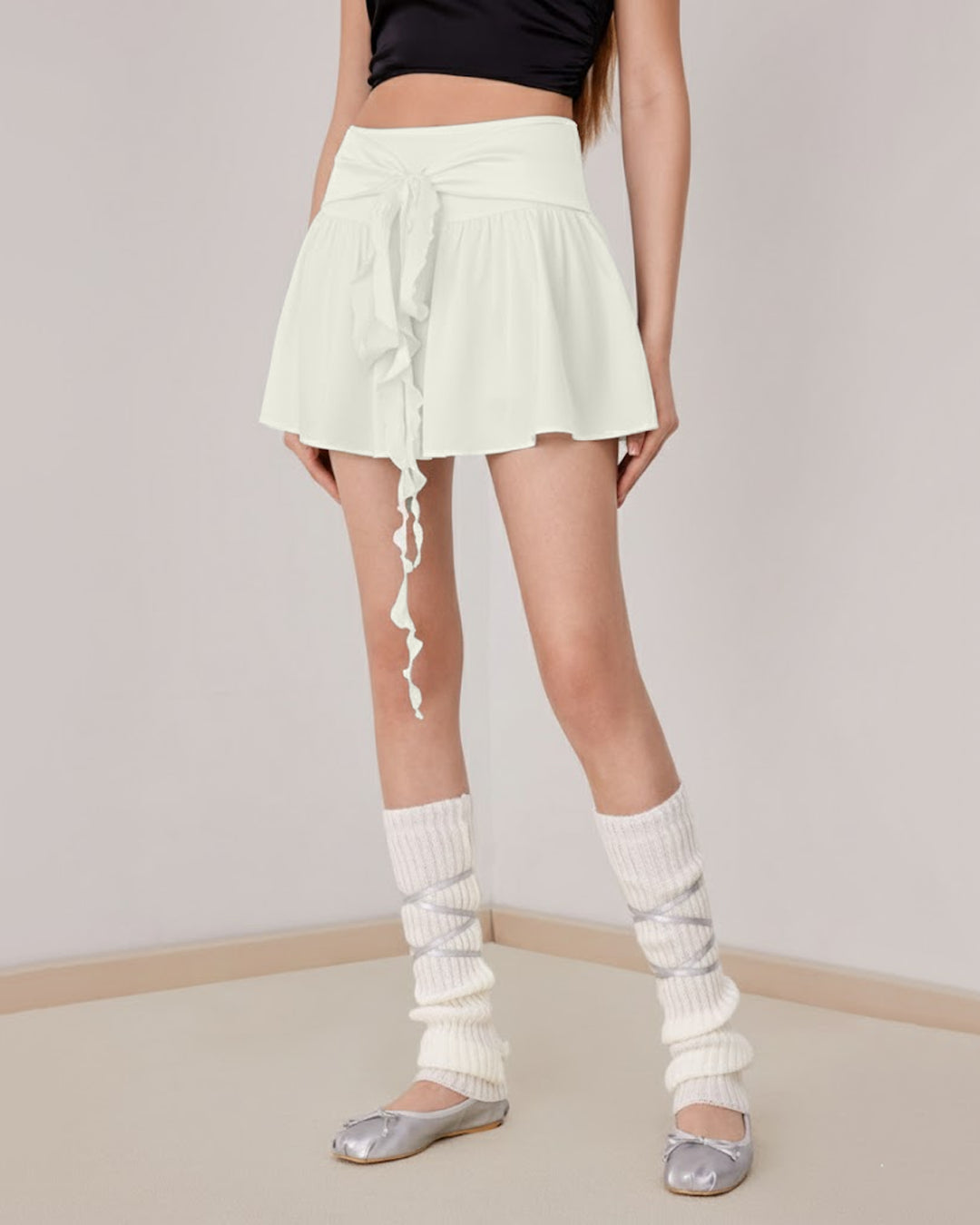 Knotted Ruffle High Waist Mini Skirt in Milky White