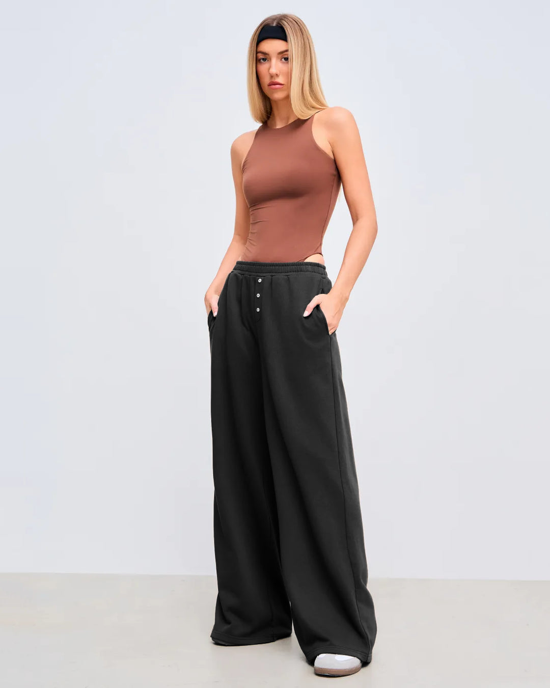 These Wide Leg Trousers can be styled with fitted tops, oversized tees, or light knits depending on the vibe you want. The fit stays airy and comfortable, and the clean structure makes it feel put together with very little effort. Good for casual days, quick errands, or easy weekend looks.