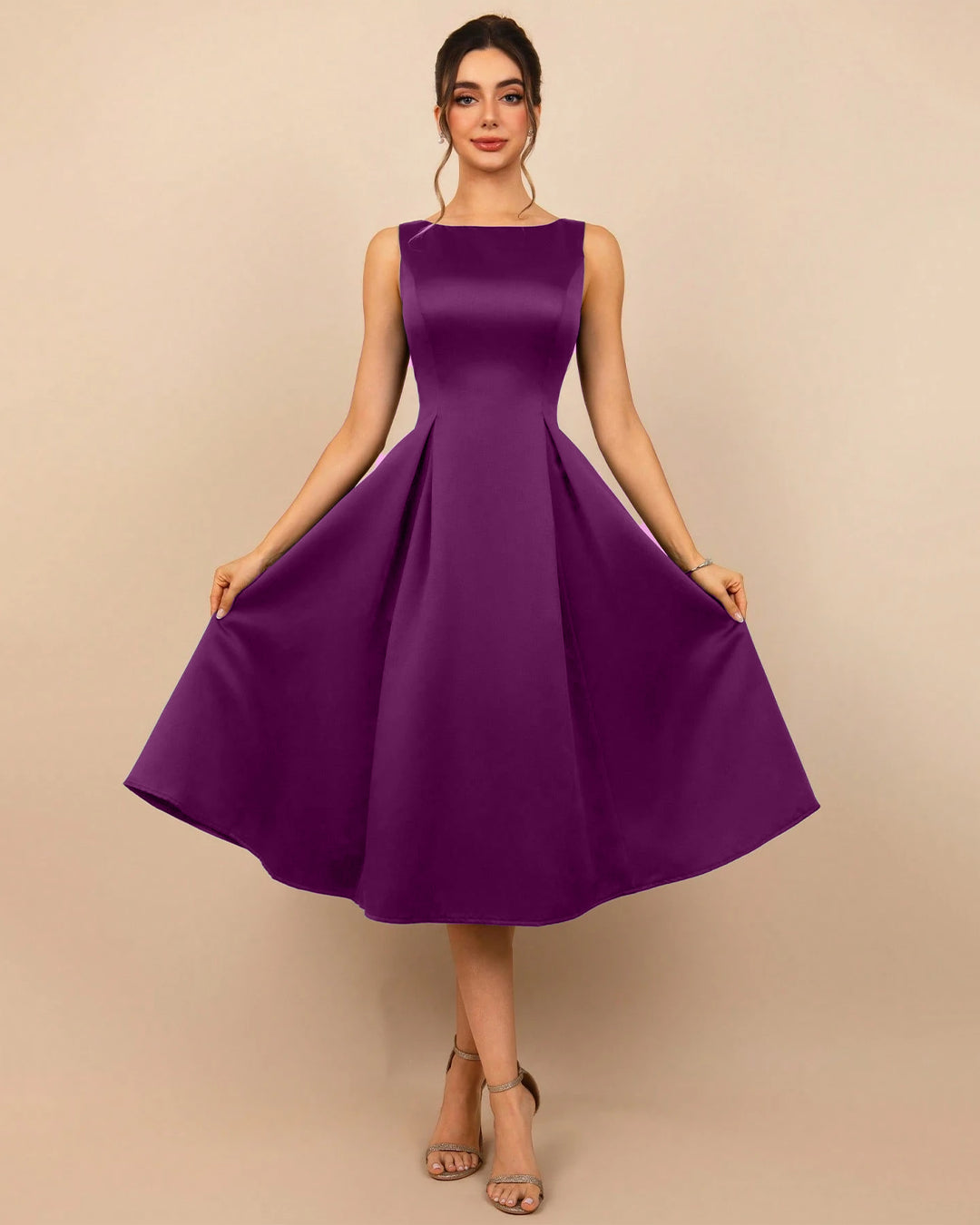Sleeveless Round Neck Flared Midi Dress in Wine brings a clean, elegant shape with a soft flow that feels effortlessly put together. This Midi Dress in Wine has a smooth round neckline, a fitted upper body, and a flared bottom that moves easily with every step. The rich Wine tone adds a polished vibe, while the lightweight polyester keeps it easy, airy, and comfortable for long hours. The overall look is simple but charming, perfect for days when you want to look refined without trying too hard.