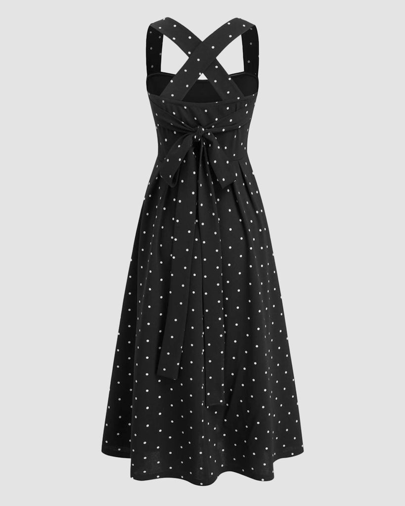 Square Neck Polka Dot Ruffle Criss Cross Maxi Dress
