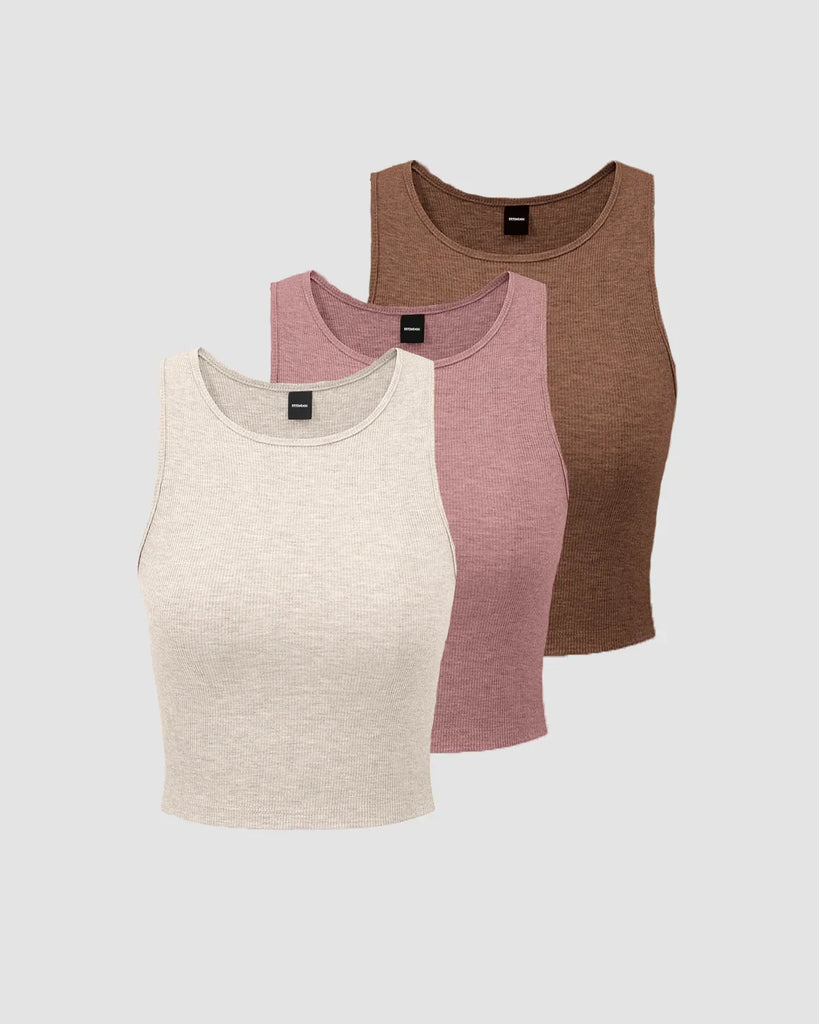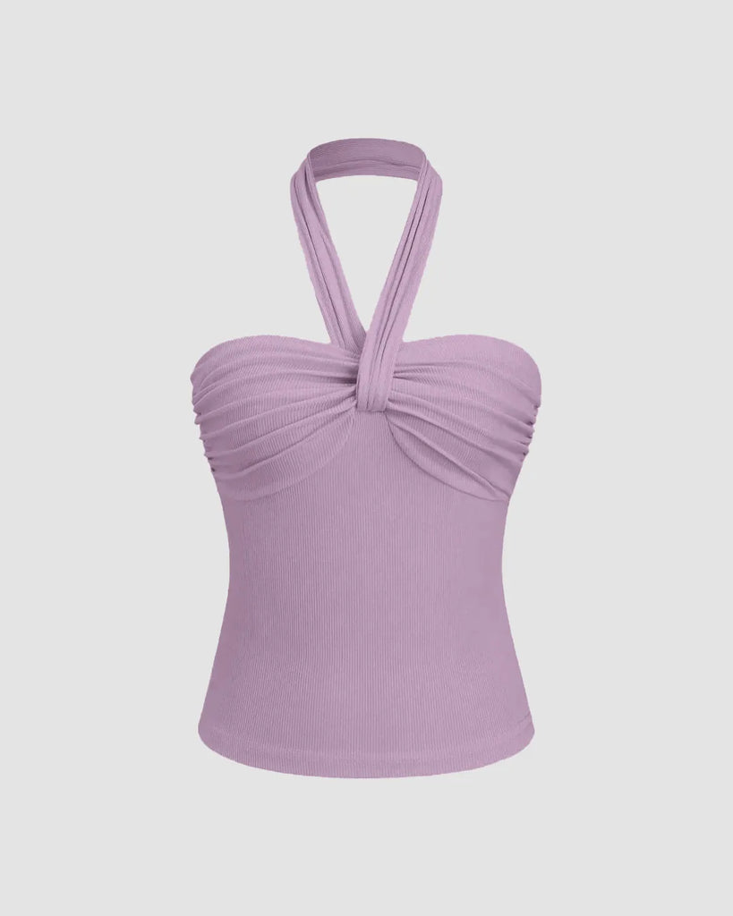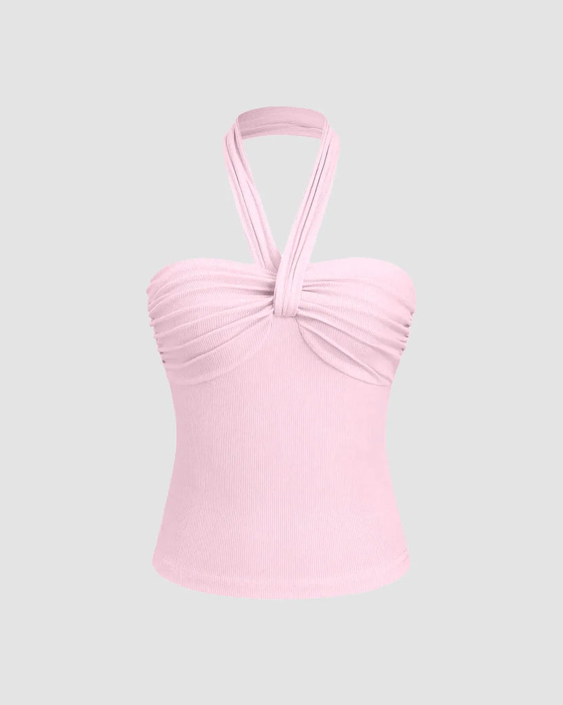 Solid Color Slim Fit Halter Neck Crop Top in Beige
