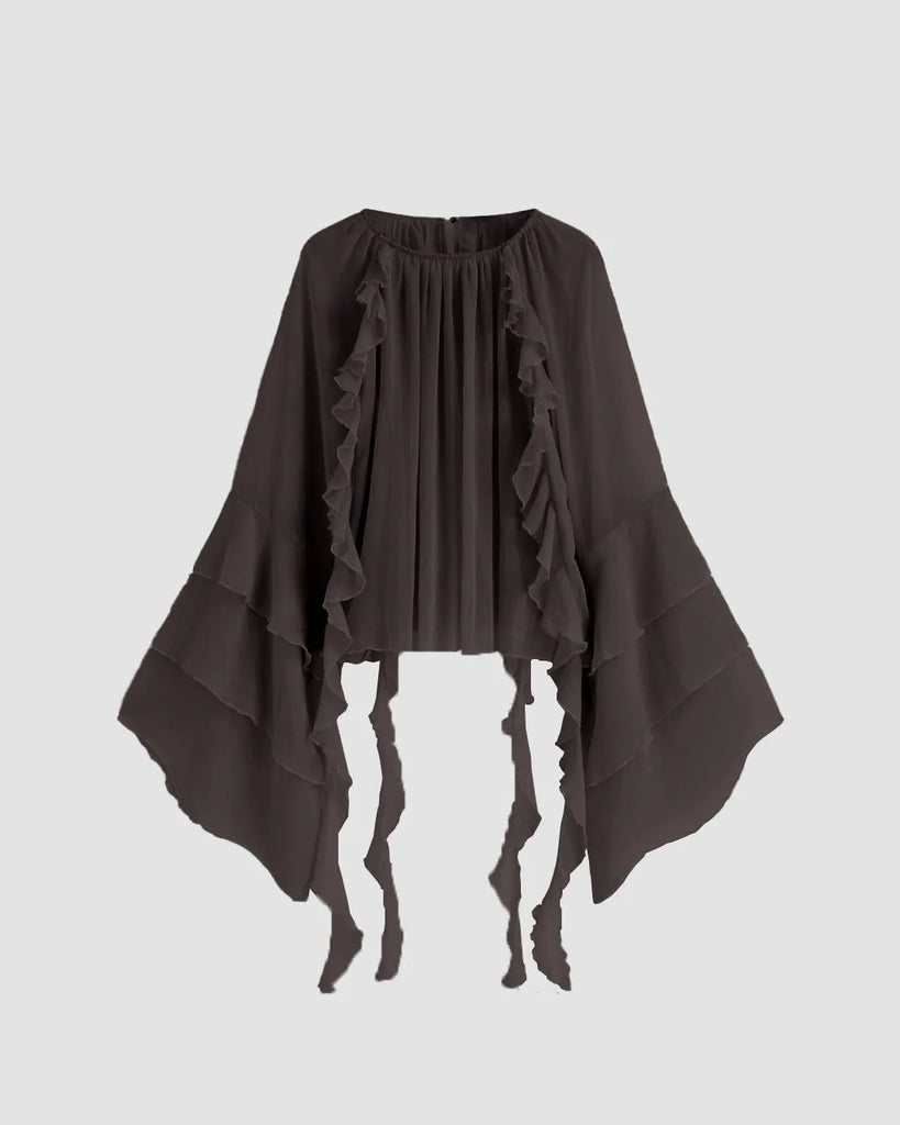 Loose Fit Long Sleeve Pleated Hem Casual Top in Maroon