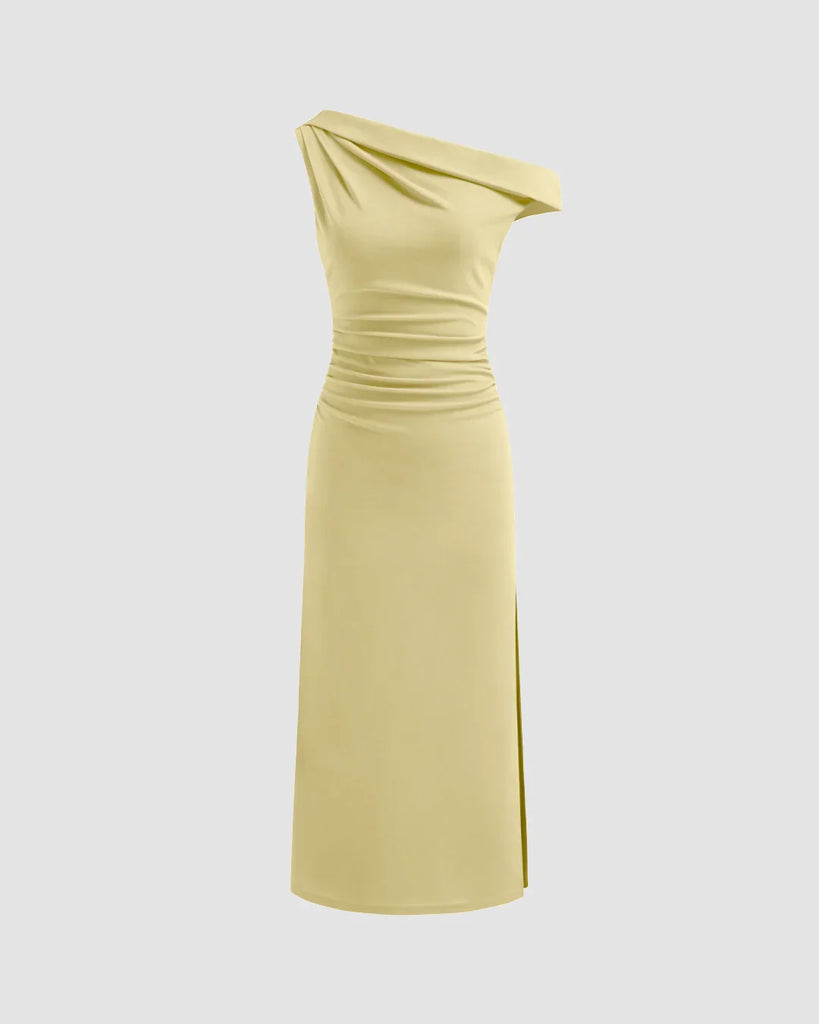 Brown Asymmetrical Neck Bodycon Maxi Dress
