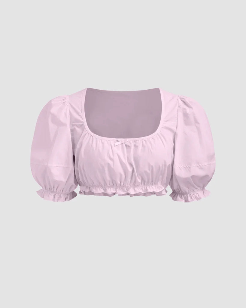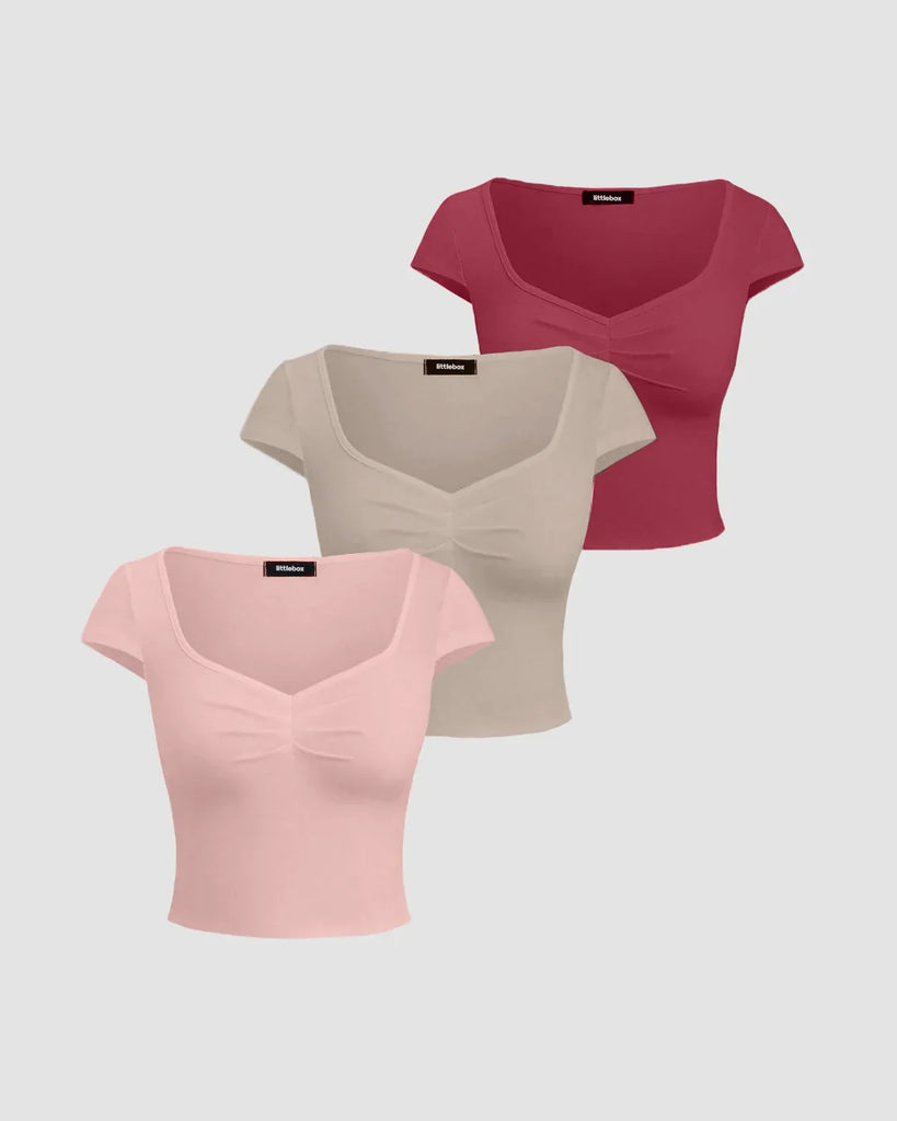 Checkered Ruched Sweetheart Neck Half Sleeve Top