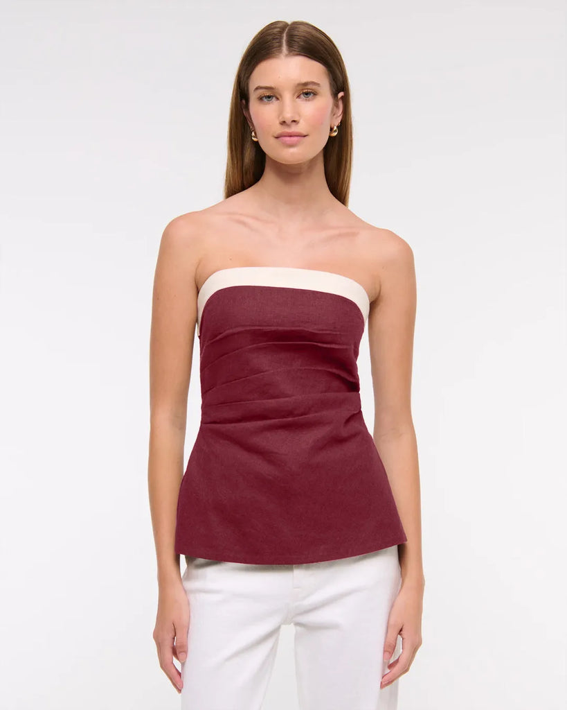 Turndown Collar Blazer & Bustier Two Piece Dress In Burgundy