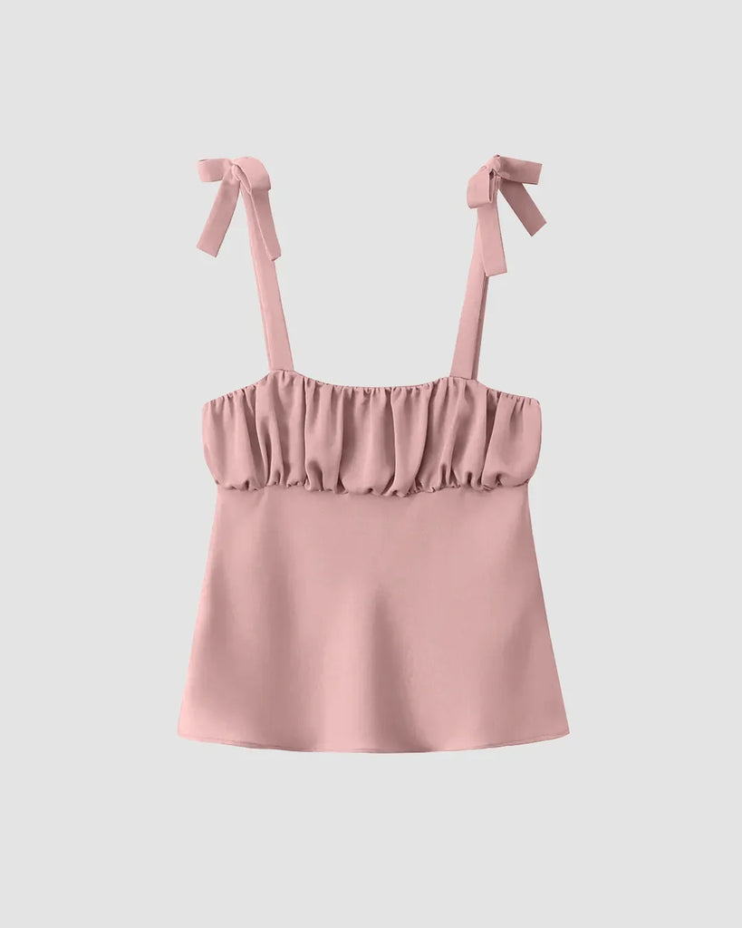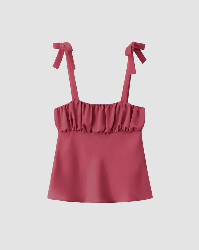 Wine Bowknot Strap Satin Cami Top with Halter Neck