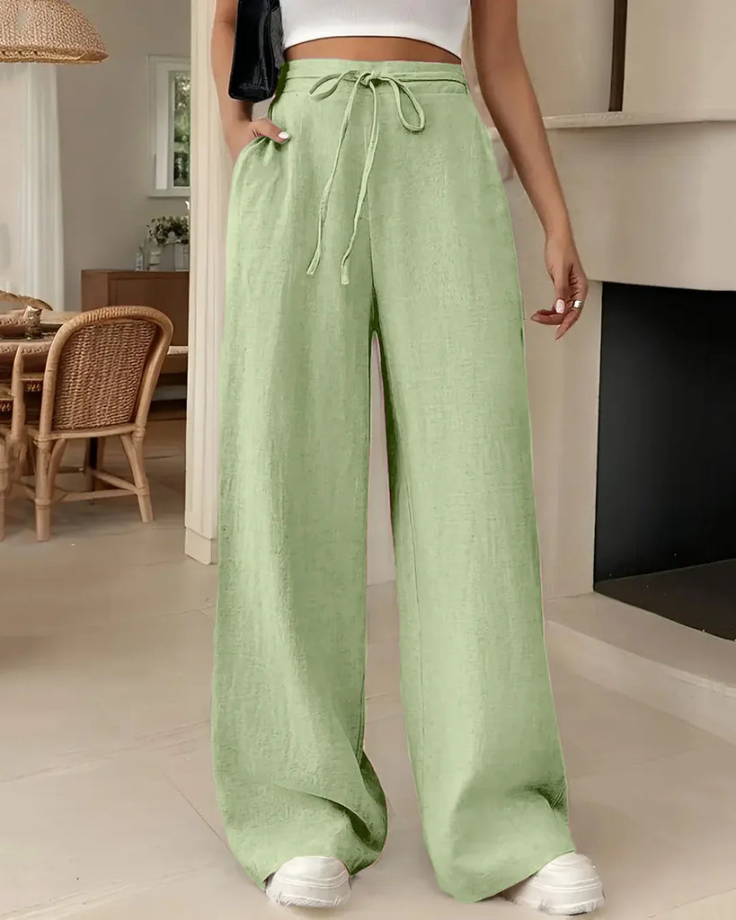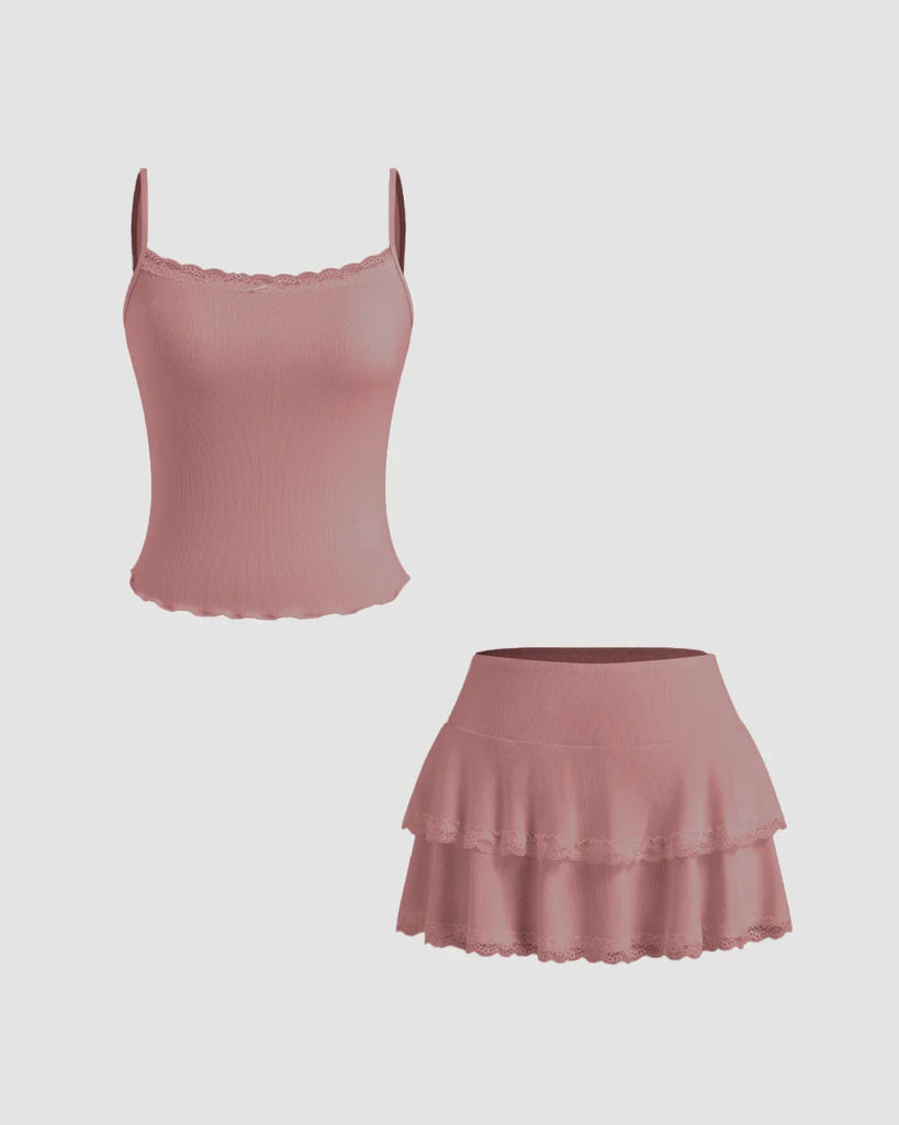 Sweetheart Neckline Knotted Cami Top & Mid Rise Wide in Mocha