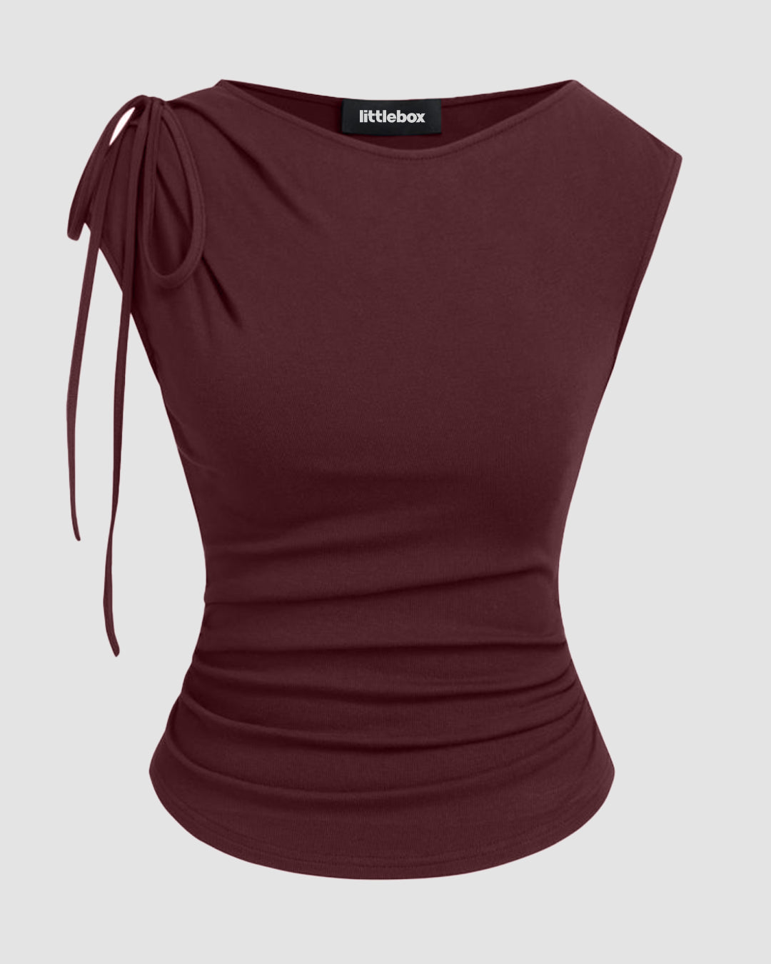 Asymmetrical Neck Bowknot Cinched Waist Top in Maroon is sleek, bold, and made to flatter. This cinched waist top features a modern asymmetrical neckline with a soft bowknot detail on the shoulder that adds subtle drama. The fitted silhouette hugs your shape, while the gathered waist enhances your curves in an effortless way. Designed in a smooth stretch fabric, this cinched waist top feels breathable and comfortable for long hours. The rich maroon shade brings a luxe, evening ready vibe while still being easy to style.