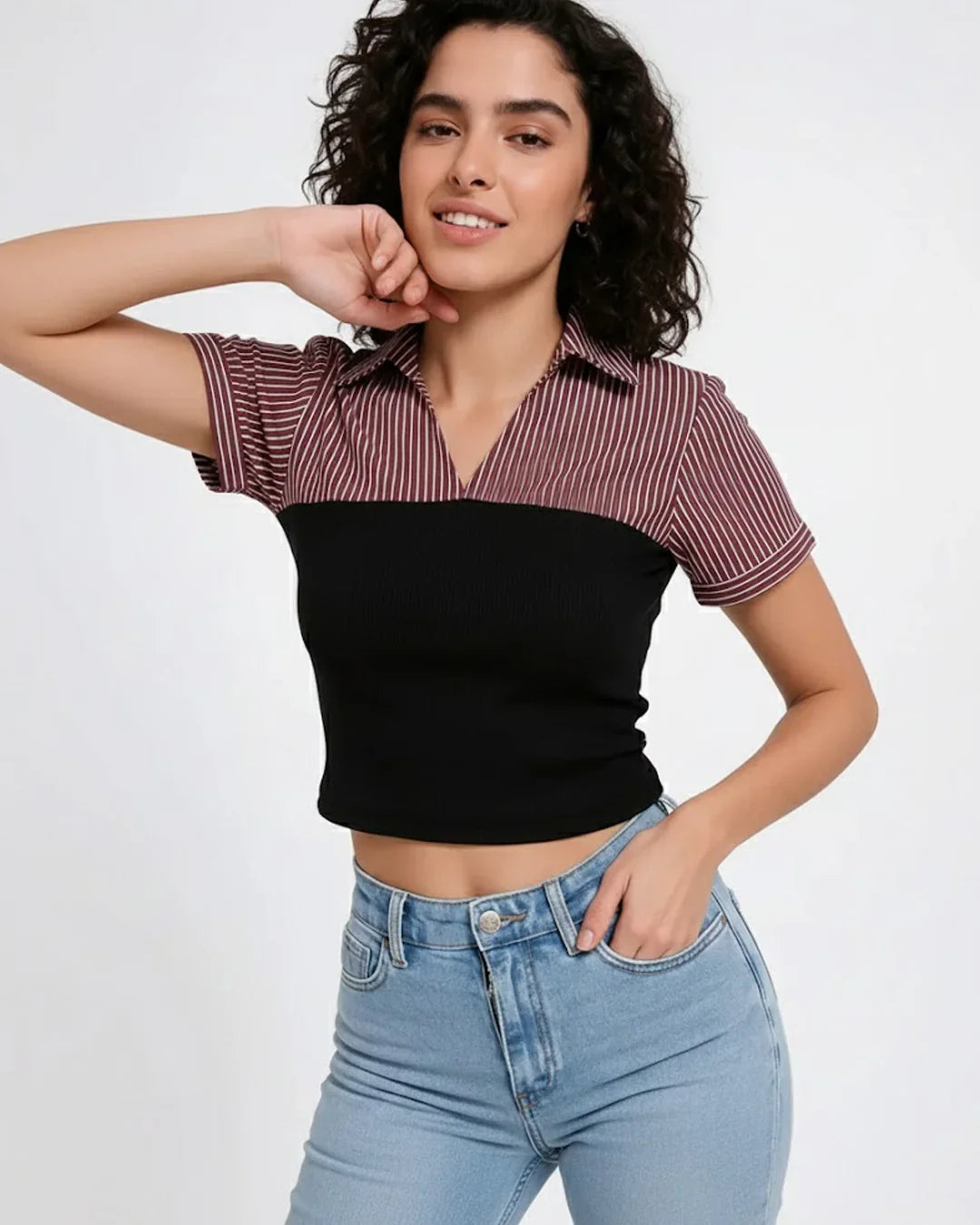 This crop top is all about clean lines and easy everyday style. Designed with a slim fit, it sits close to the body without feeling restrictive, giving a neat and flattering shape. The short sleeves keep it relaxed and breathable, while the straight hem adds a minimal, no-fuss finish. Its solid design makes it a versatile staple that fits right into casual wardrobes and works across seasons.