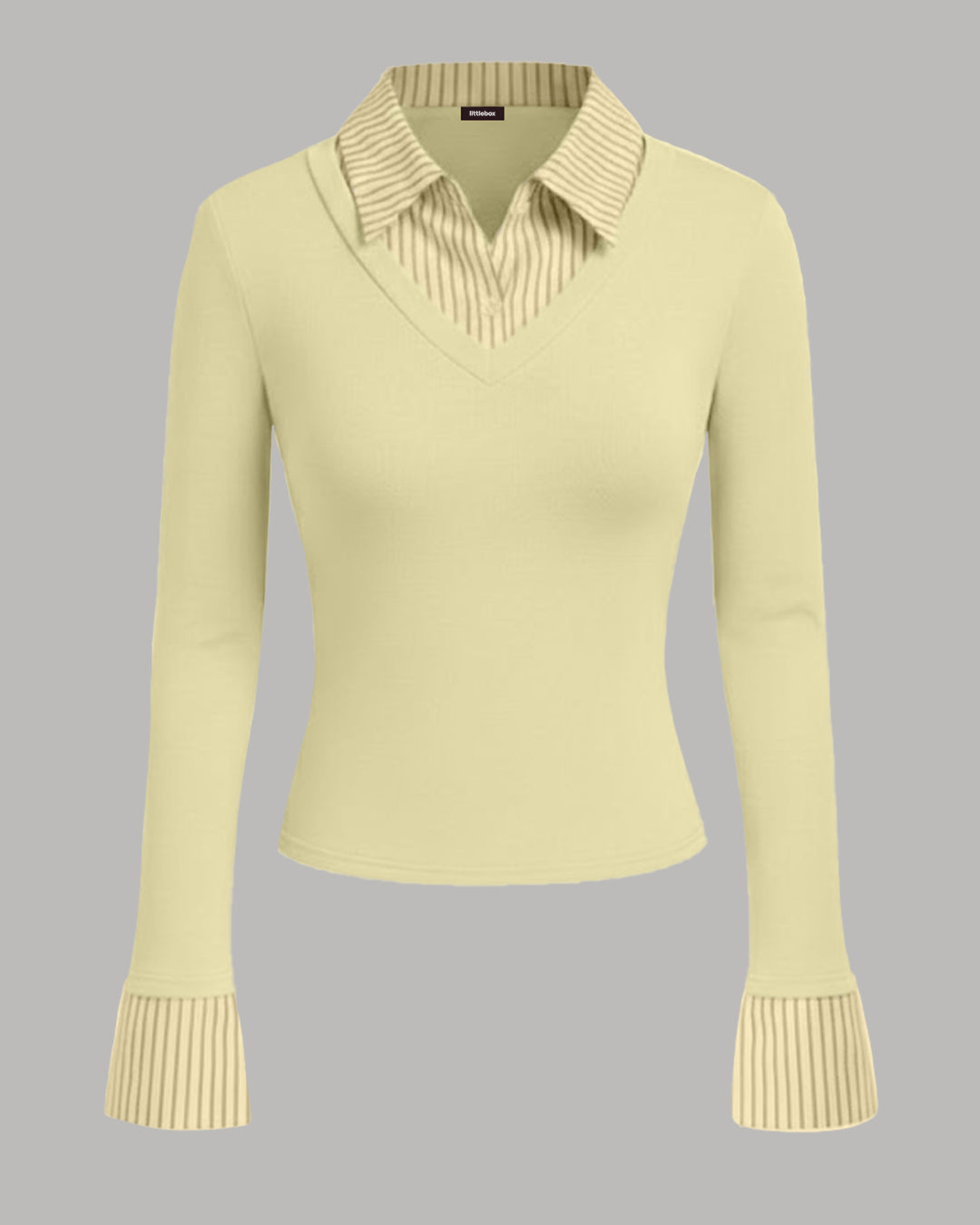 Collar Stripe Two Tone Top in French Vanilla blends smart details with a clean, everyday vibe. Designed with a crisp striped collar and cuff detail layered into a soft fitted base, this two tone top gives a polished look without feeling too formal. The V-style neckline keeps it modern, while the smooth stretch fabric hugs just right for a flattering shape. This two tone top feels minimal, stylish, and easy to wear, making it a strong pick for effortless outfits.