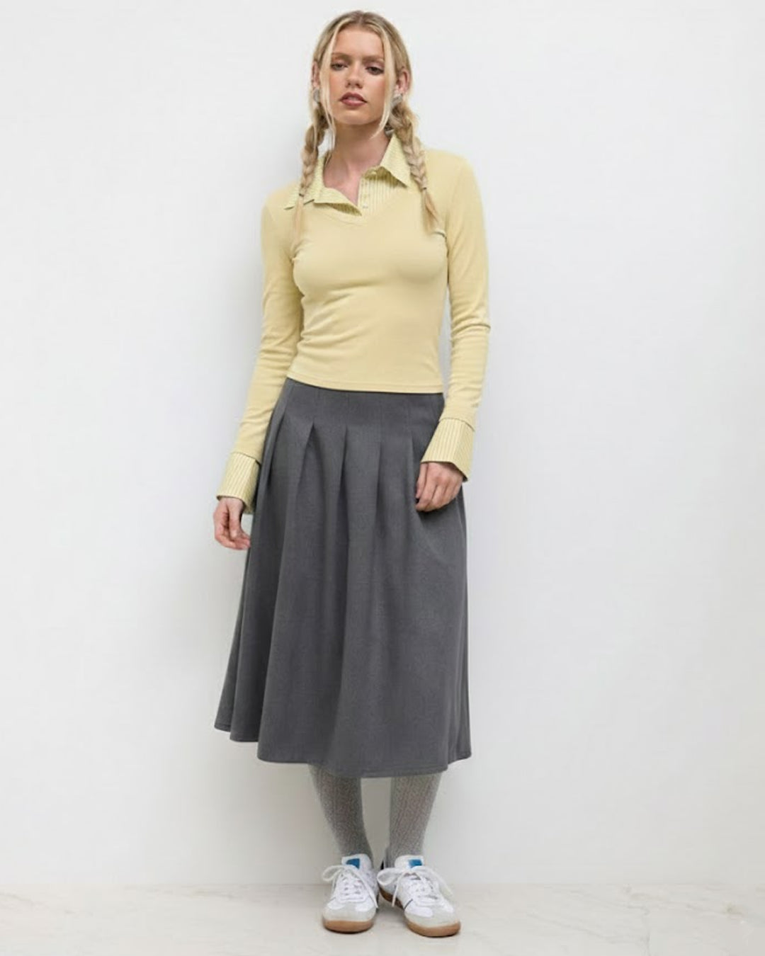 - Smart collar detail with a modern layered look