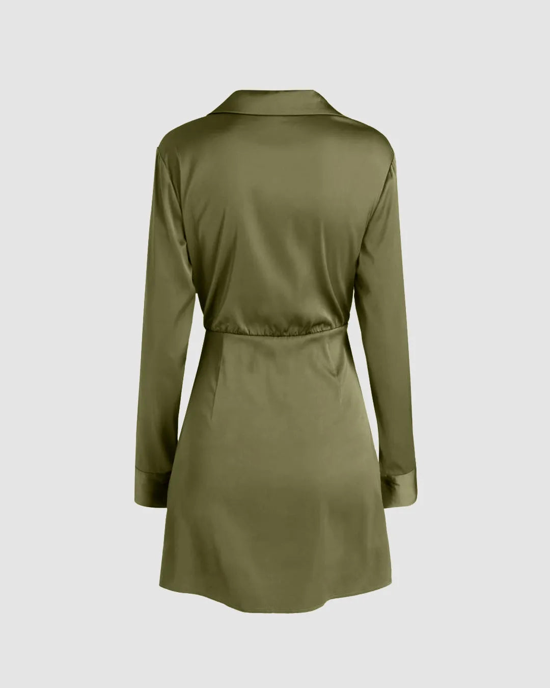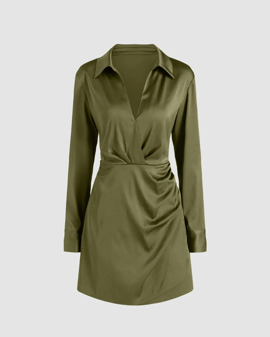 Collared V-Neck Long Sleeve Herbal Green Mini Dress