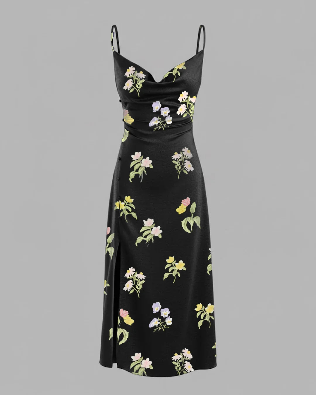 Cowl Neck Sleeveless Floral Straight Hem Midi Dress is the kind of piece that feels soft, romantic, and effortlessly elegant. The gentle cowl neckline drapes beautifully across the front, while the slim silhouette keeps the overall look clean and flattering. This Cowl Neck Sleeveless Floral Straight Hem Midi Dress brings together feminine florals and a timeless midi length.
