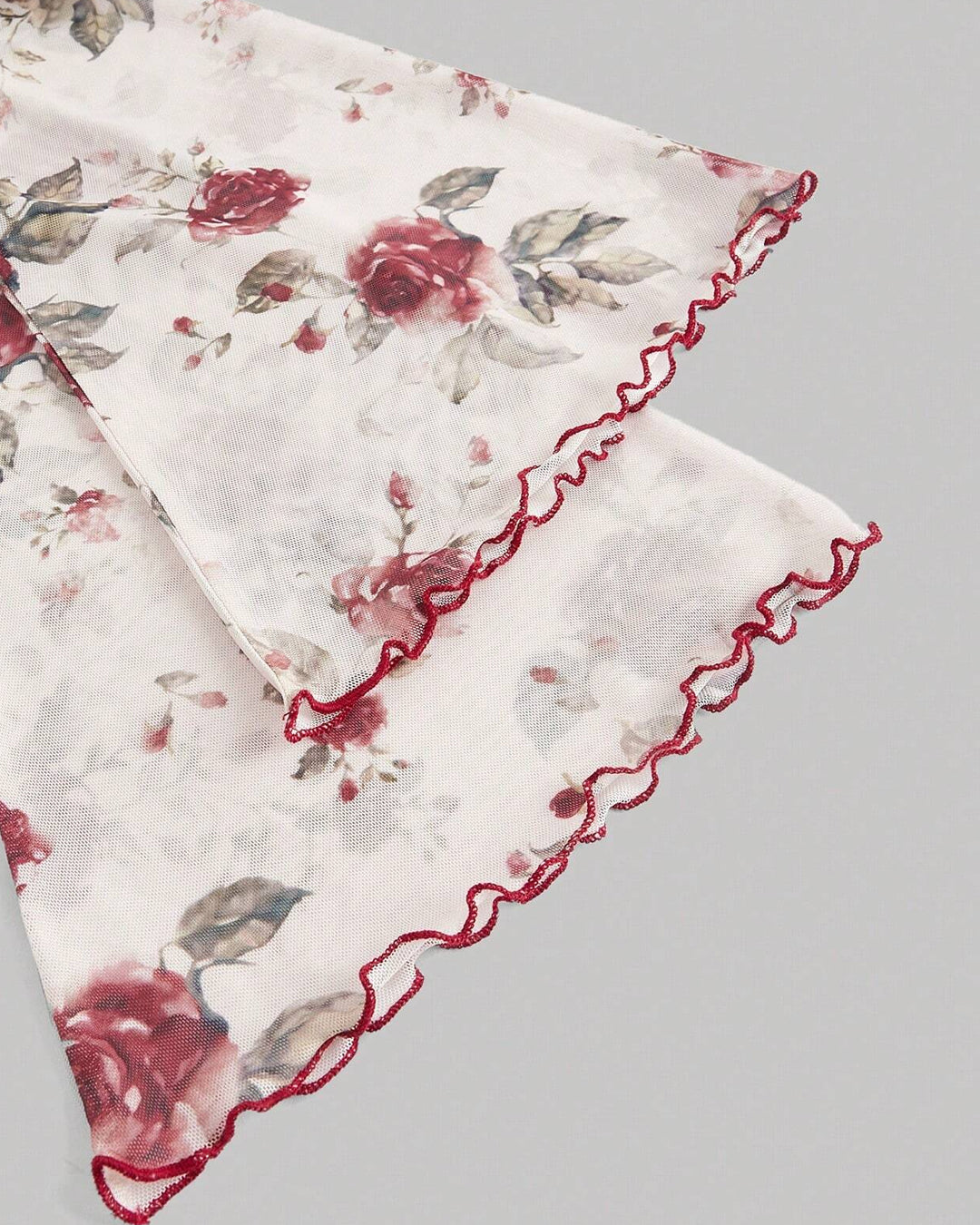 Floral Bowknot Tie Asymmetrical Hem Bell Sleeve Top is romantic, playful, and made for standout styling. This floral bell sleeve top features a flattering square neckline that frames your collarbones beautifully. The bowknot tie detail at the waist adds a cute, feminine touch while enhancing your shape. The asymmetrical hem gives it a trendy twist, and the flared bell sleeves bring soft drama. Crafted in a polyester and lycra blend, this floral bell sleeve top feels stretchy, smooth, and comfortable for long hours. The soft cream base with red floral print keeps it dreamy yet bold.
