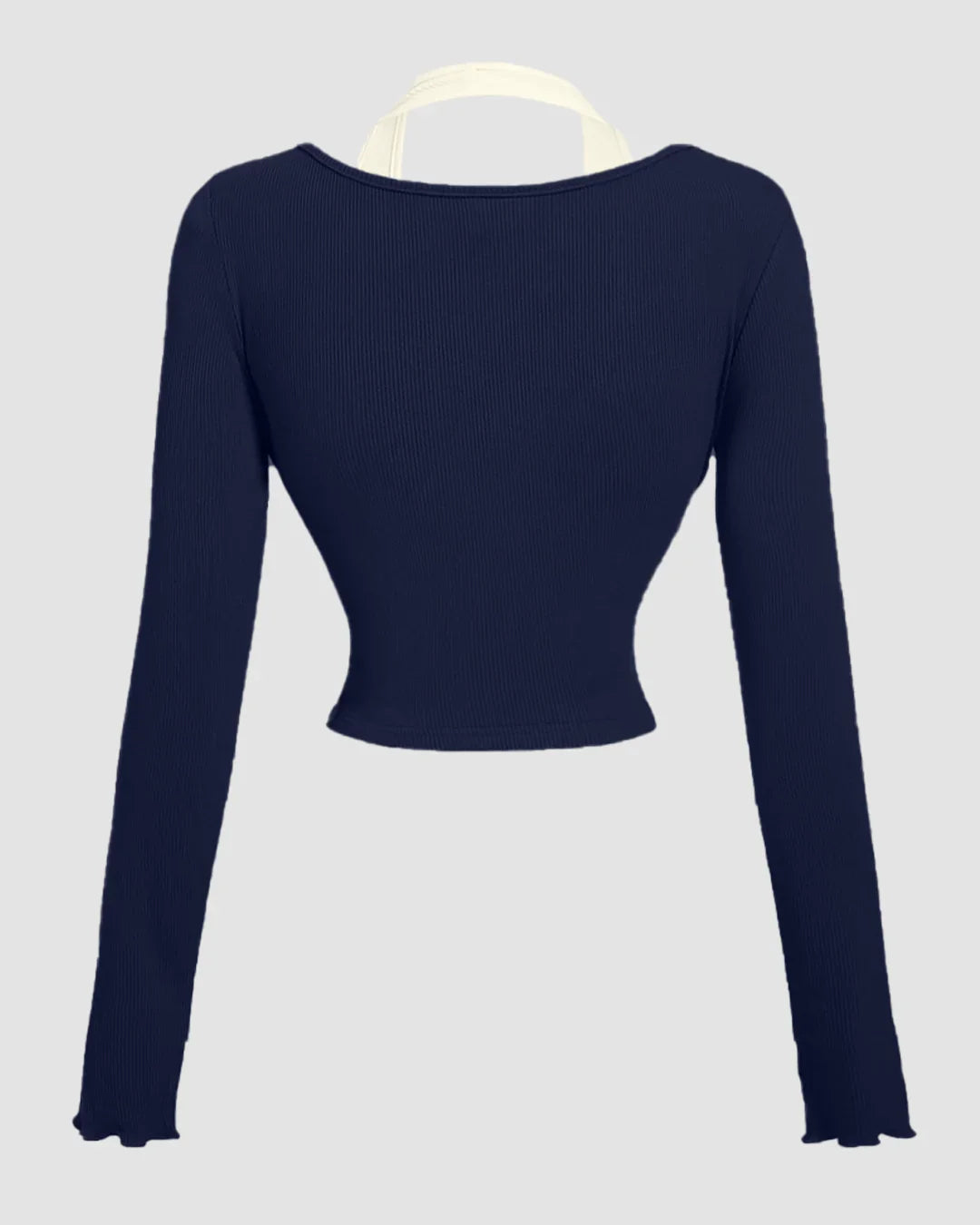 Halter Neck Straight Hem Full Sleeve 2-In-1 Crop Top in Navy Blue