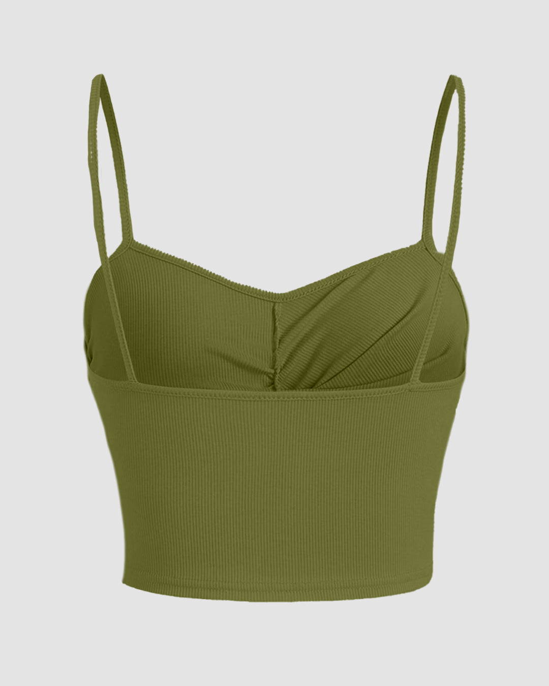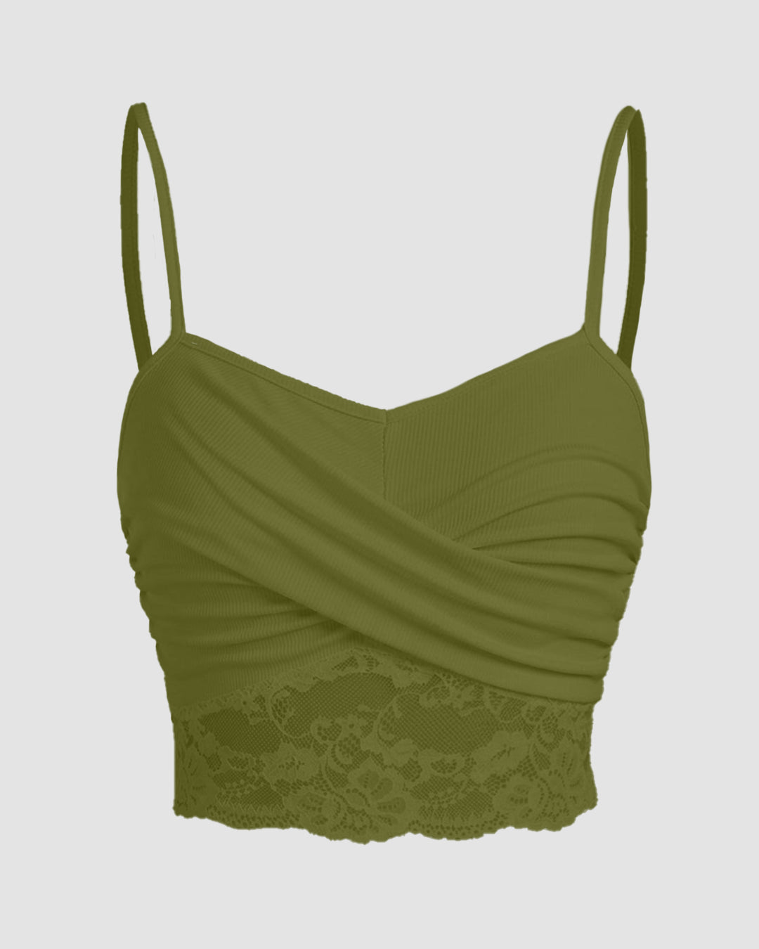 Lace Splicing Wrapped Cross Neck Camisole Top in Avocado Green