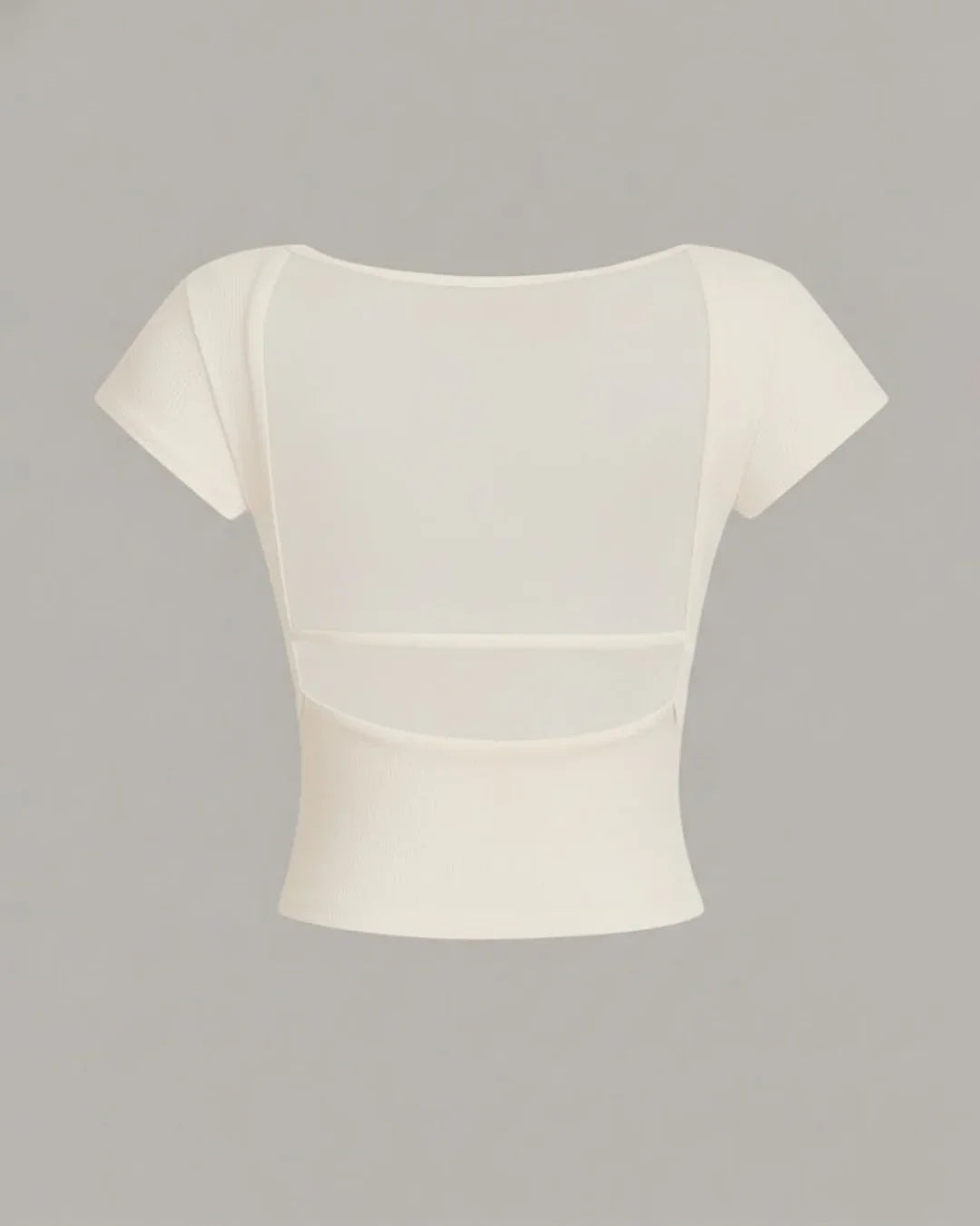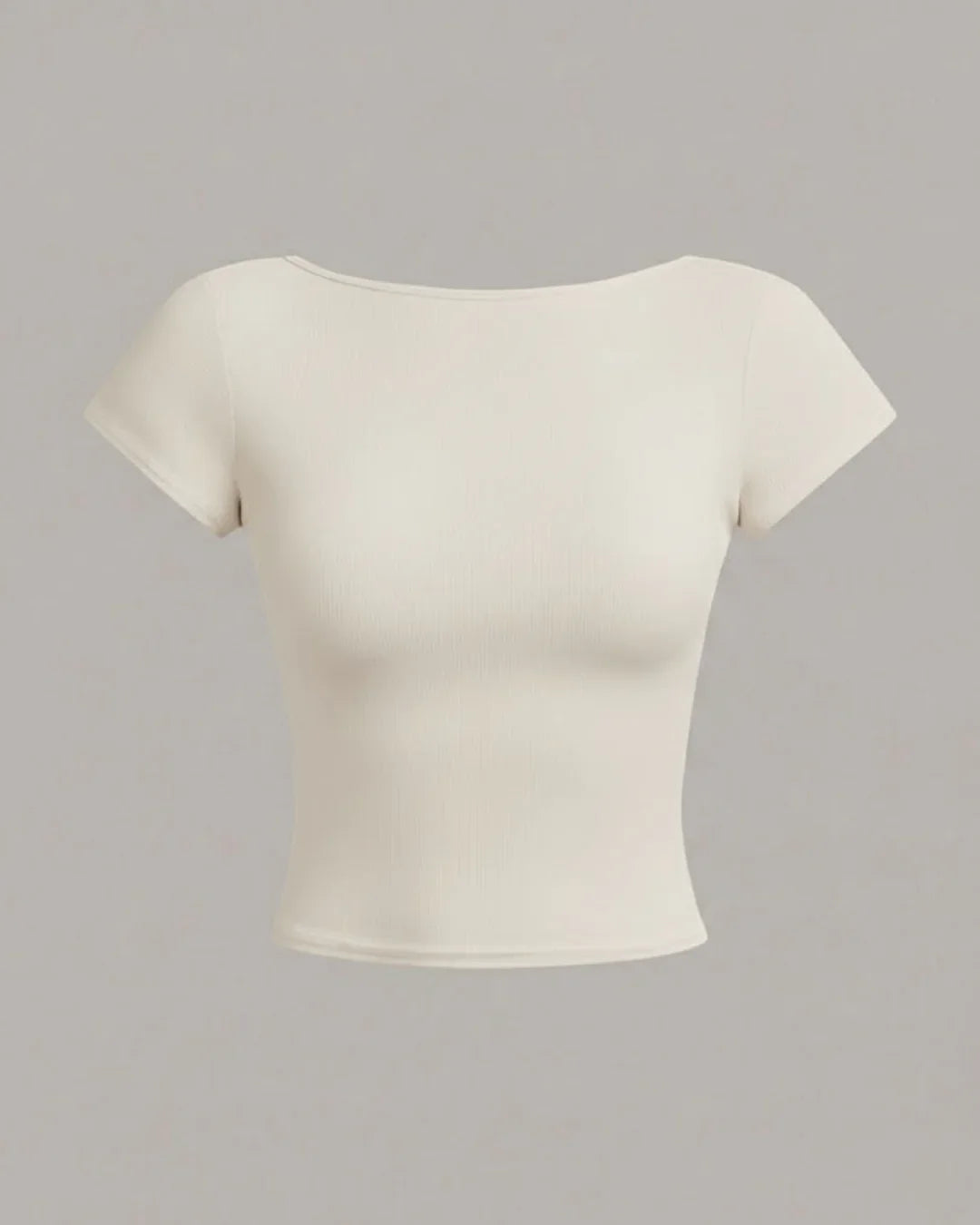 Minimalist Backless Short Sleeve Crop Top in Milky White