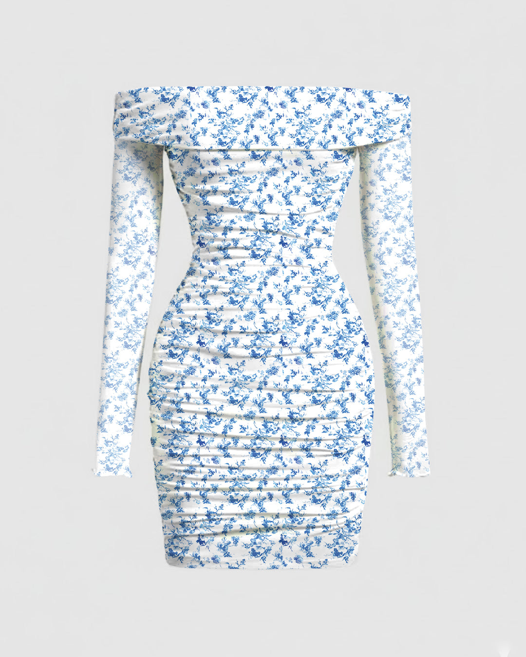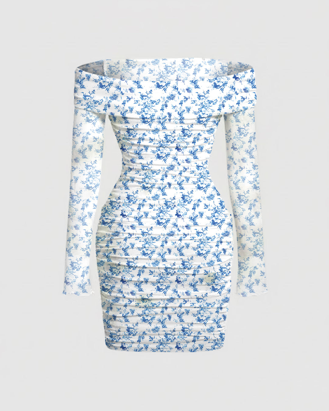 Off-Shoulder Floral Print Bodycon Mini Dress