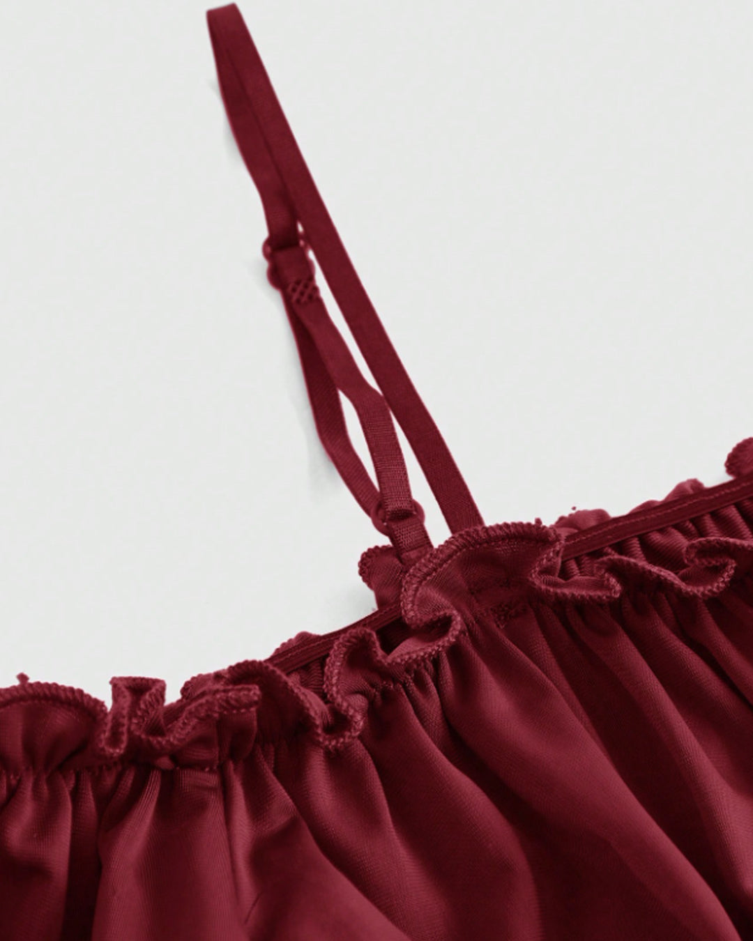 Off-Shoulder Slim Fit Solid Bell Sleeve Crop Top in Burgundy