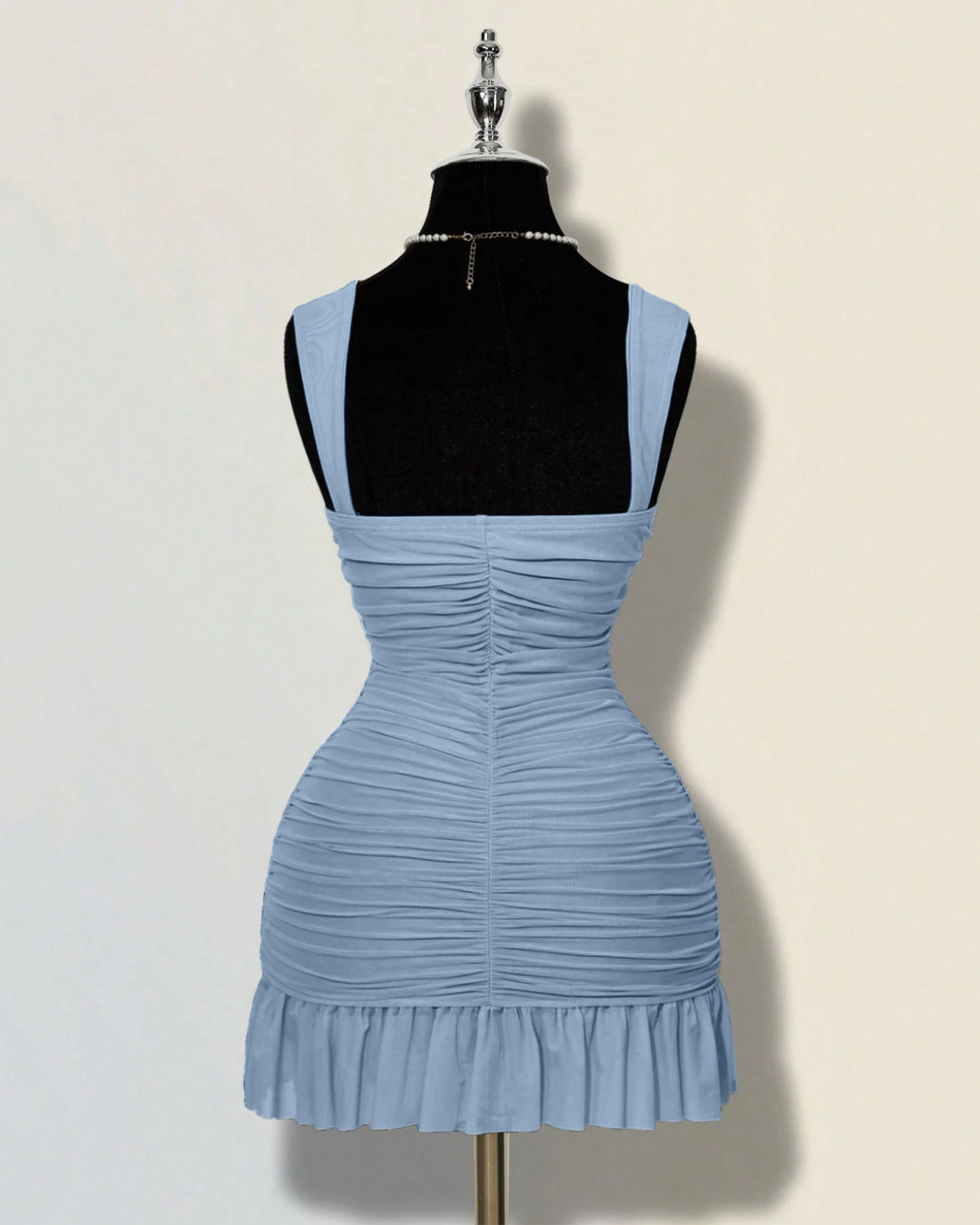 Ruffle Hem Square Neck Mini Fitted Dress in Dusty Blue is cute, sculpted, and made to hug your curves. This square neck mini dress features a flattering neckline that frames the collarbone beautifully. The ruched detailing across the body enhances your shape, while the ruffle hem adds a playful, flirty finish. Crafted in a polyester and spandex blend, this square neck mini dress feels stretchy, smooth, and comfortable for long hours. The blue shade keeps it fresh and perfect for both day and night looks.