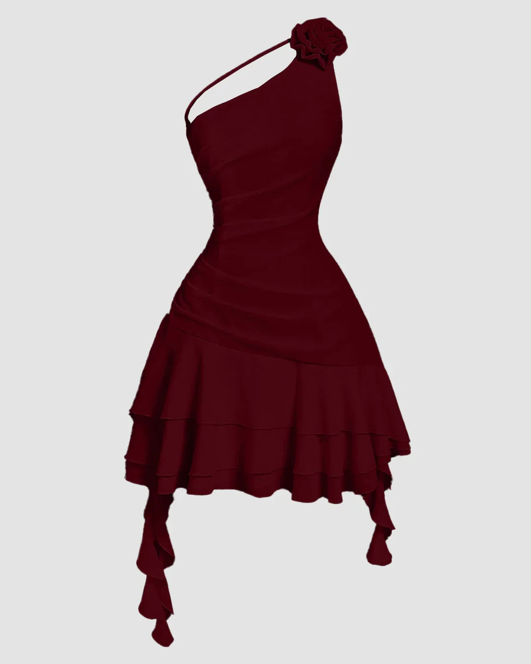 Ruffle Trim Fit and Flare Mini Dress in Maroon