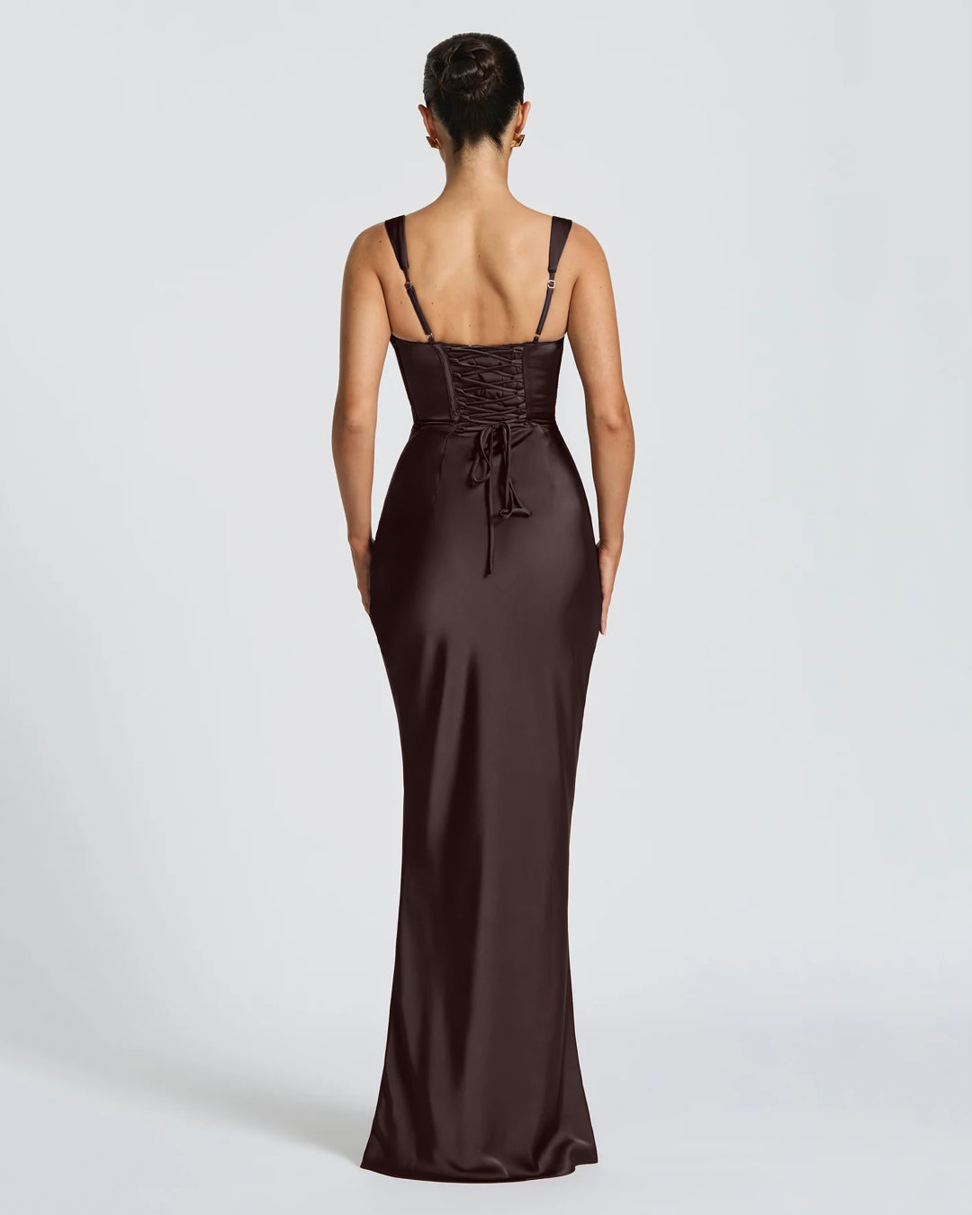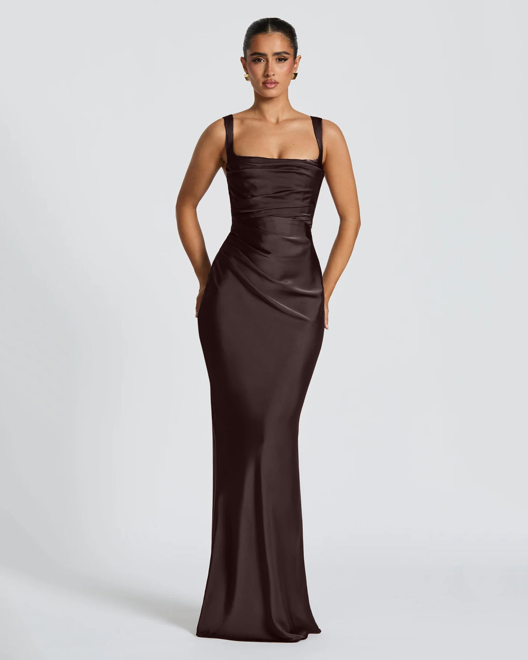 Crafted in smooth polyester, the fabric drapes neatly without feeling heavy, making it comfortable for extended wear. The fitted design keeps the look sharp without being restrictive, perfect for occasions where you want to look put together with minimal effort. From dinners to evening events, this Maxi Dress in Coffee delivers understated elegance every time.