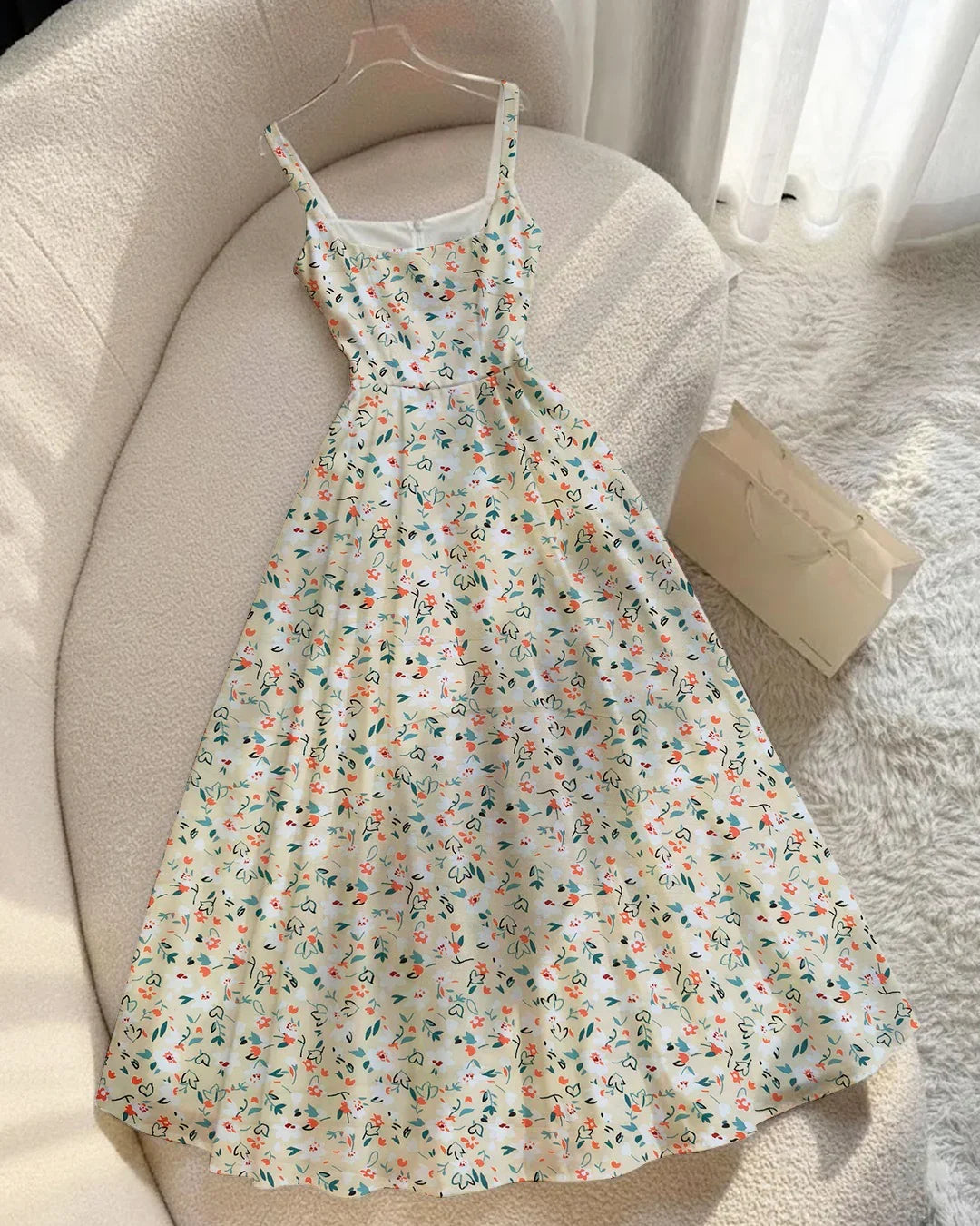 Sleeveless Square Neck Fit & Flare Floral Maxi Dress