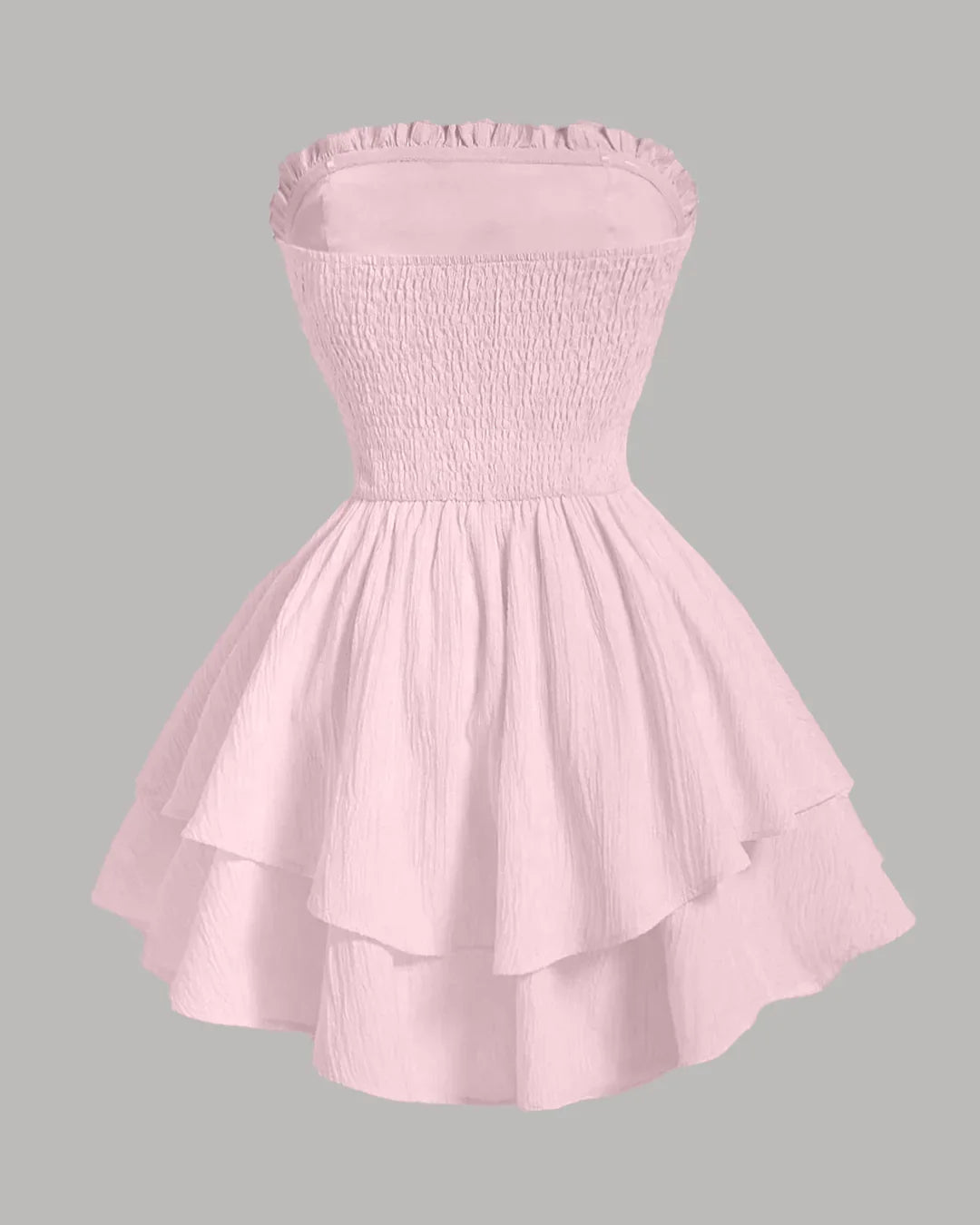 Solid Color Strapless Dress With Waist Belt in Baby Pink is made for soft glam moments. This solid color strapless dress with waist belt features a clean strapless neckline that highlights your shoulders and collarbones. The fitted bodice shapes the waist, while the layered dress adds playful volume and movement. The matching waist belt ties everything together and gives that snatched look without feeling tight. In a dreamy pink shade, this solid color strapless dress with waist belt feels feminine, fresh, and perfect for twirling into your next plan.