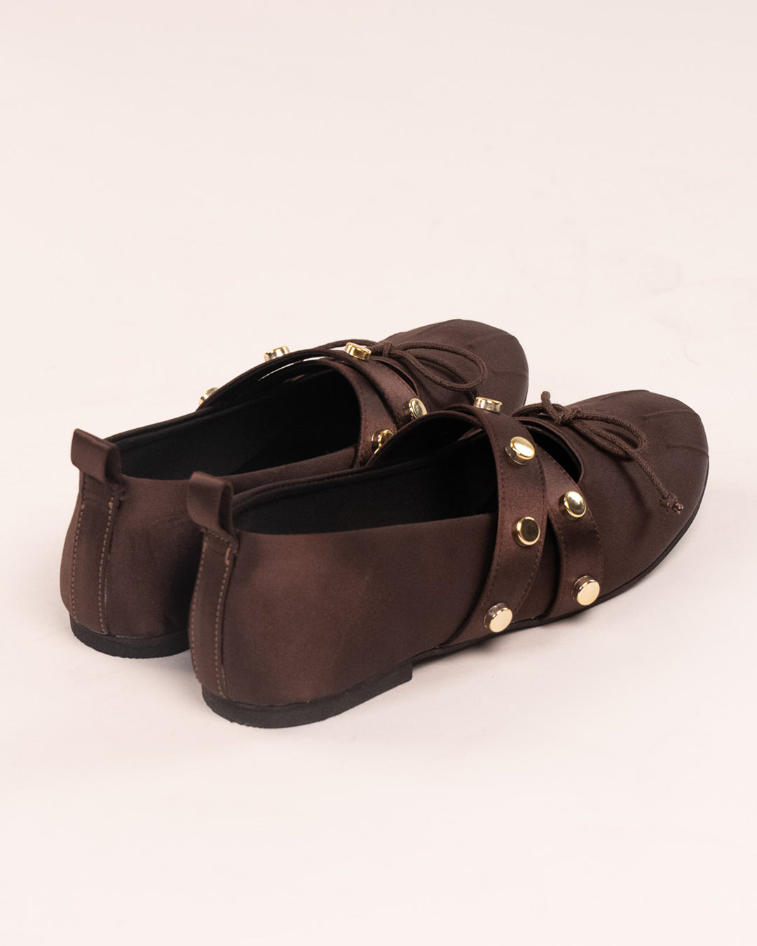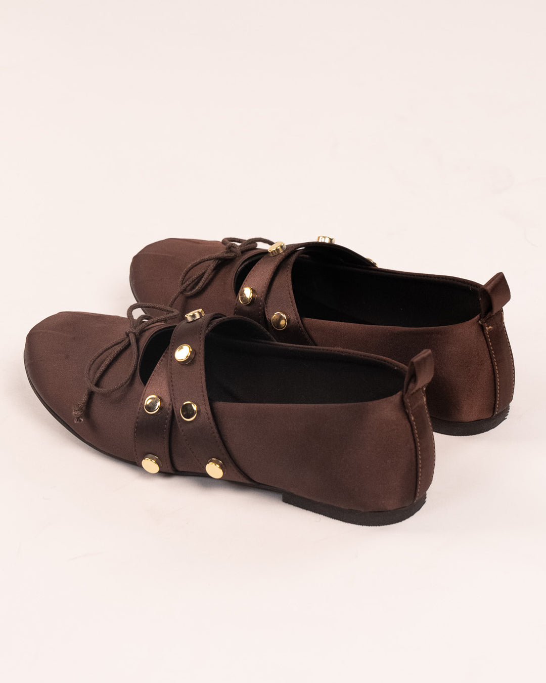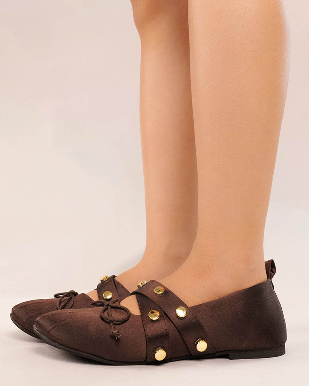 Studded Mary Jane Flats in Brown