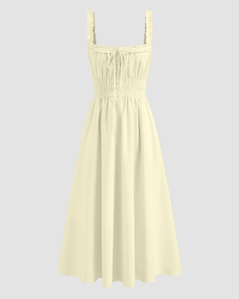 Square Neck Gathered Waist Midi Dress in French Vanilla