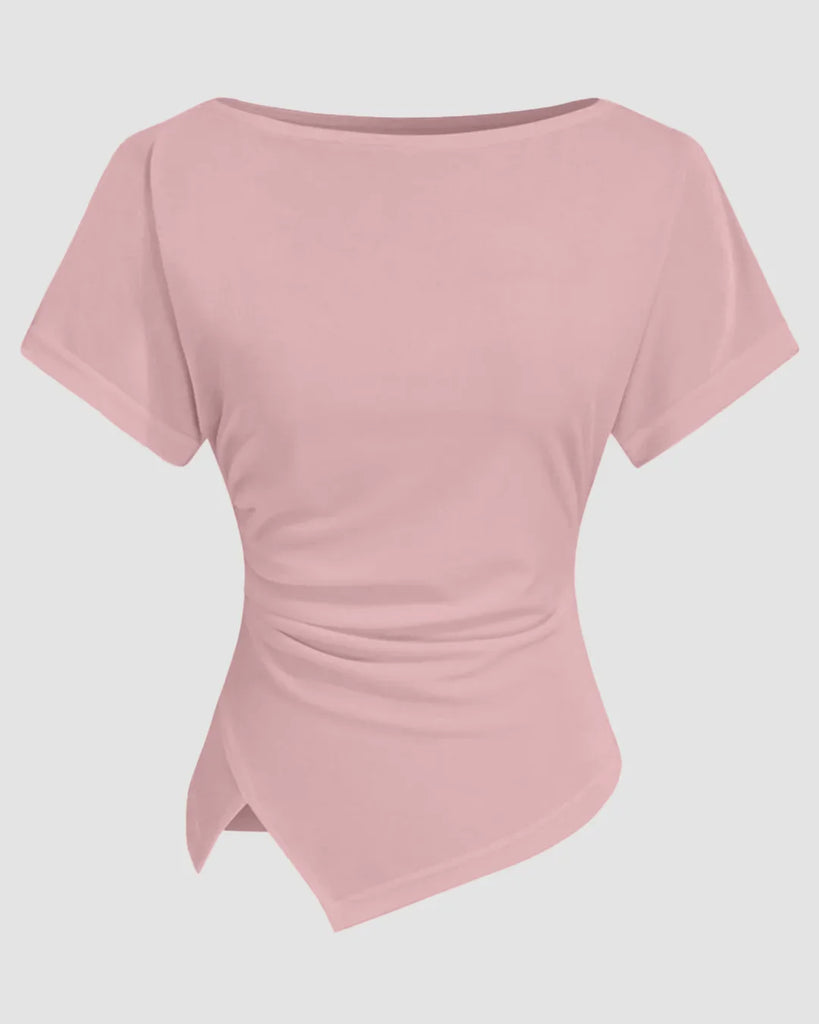 Ruched Side Asymmetrical Hem Top in Dusty Pink