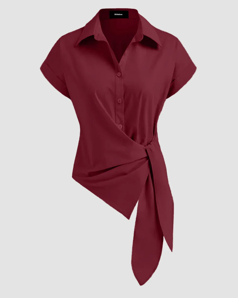 Asymmetrical Tie Waist Polo Shirt in Cherry