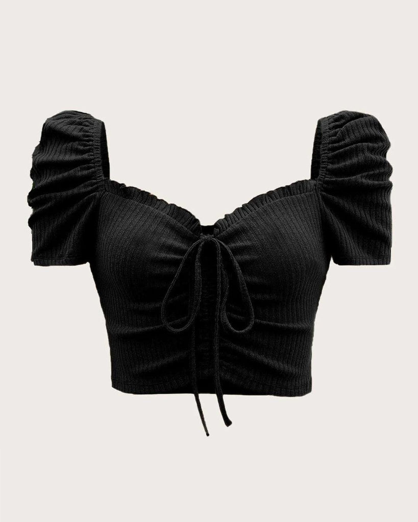 Puffed Sleeve Vest Ruffle Top In Black