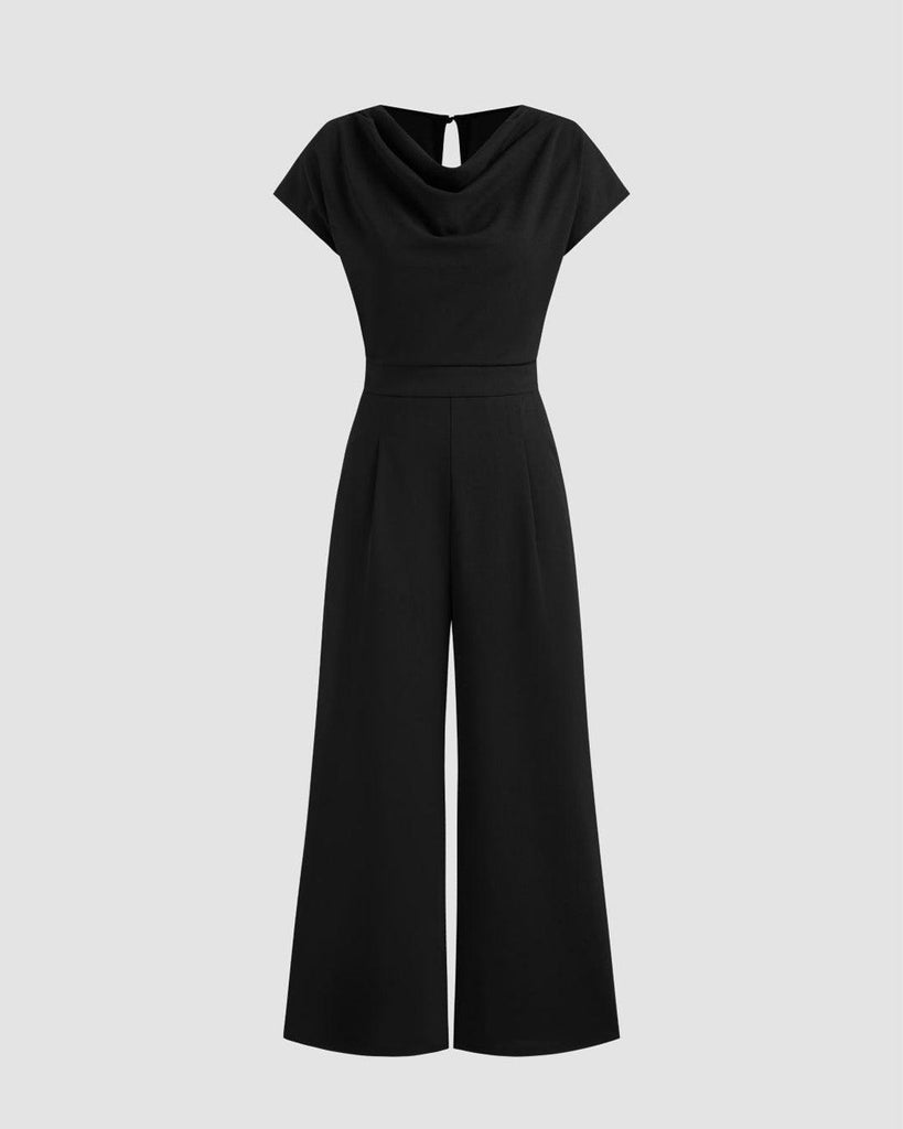 Solid Cowl Neck Jumpsuit with Pockets and Wide Legs