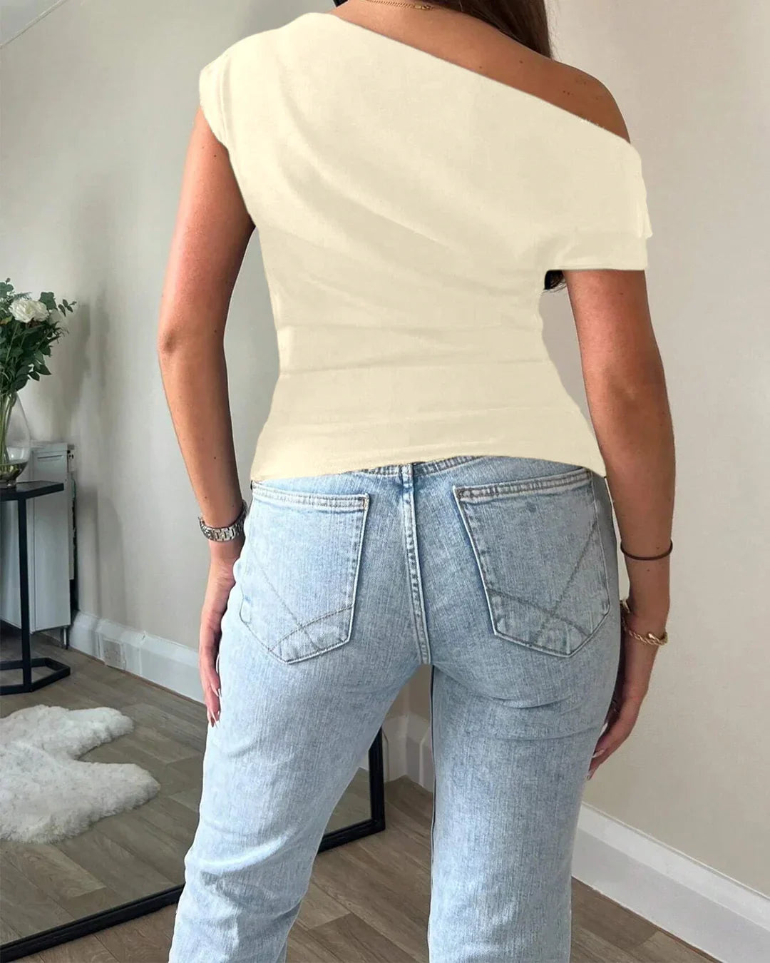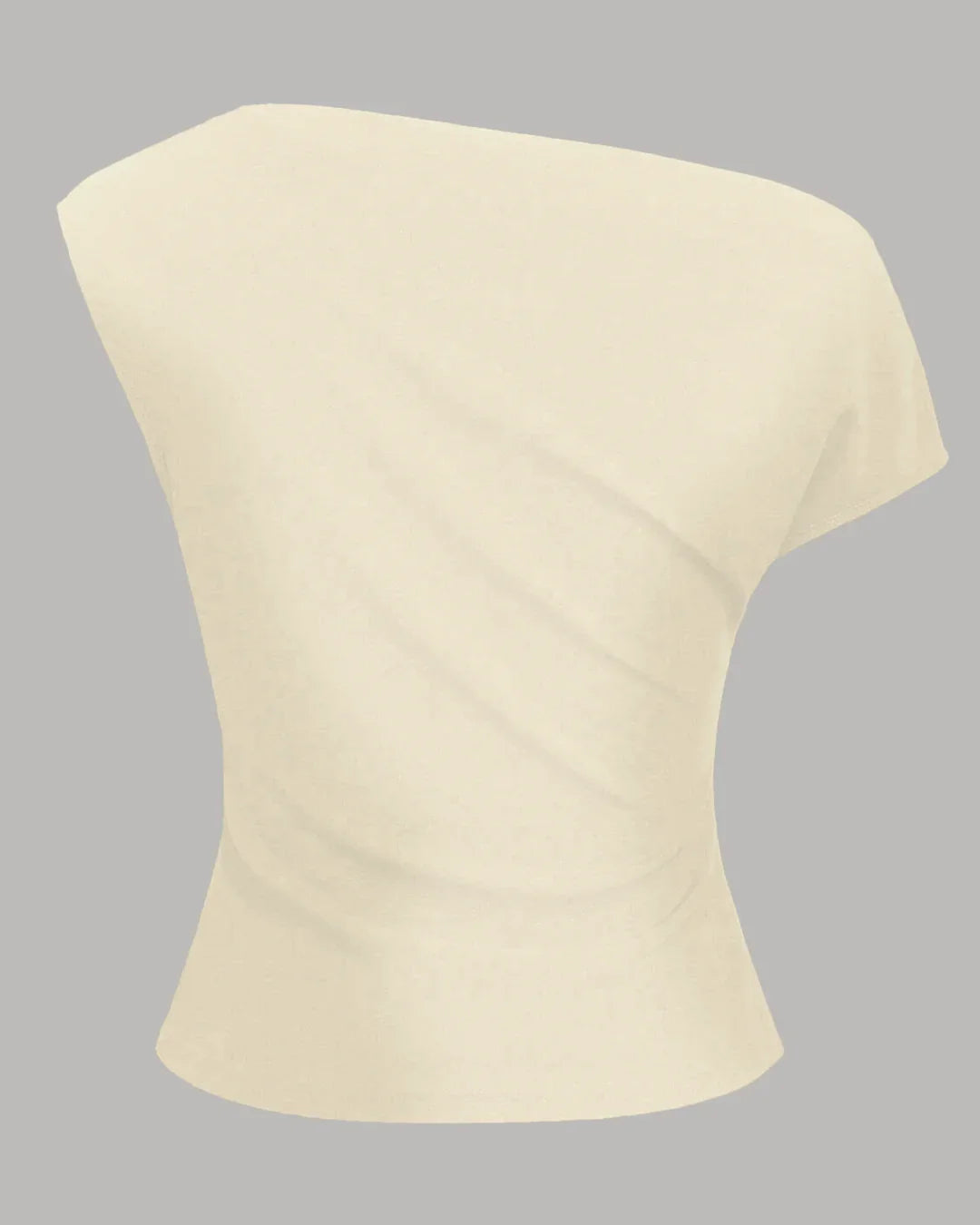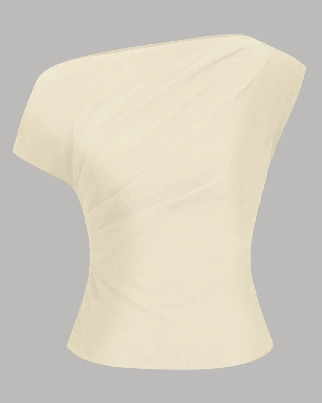 Elevate your everyday style with this one shoulder top designed for a chic yet minimal vibe. The asymmetrical neckline and ruched detailing bring a flattering silhouette that’s perfect for both casual and evening wear. Crafted from a soft crepe blend, this one shoulder top offers comfort with a polished finish, making it a versatile piece for your wardrobe.