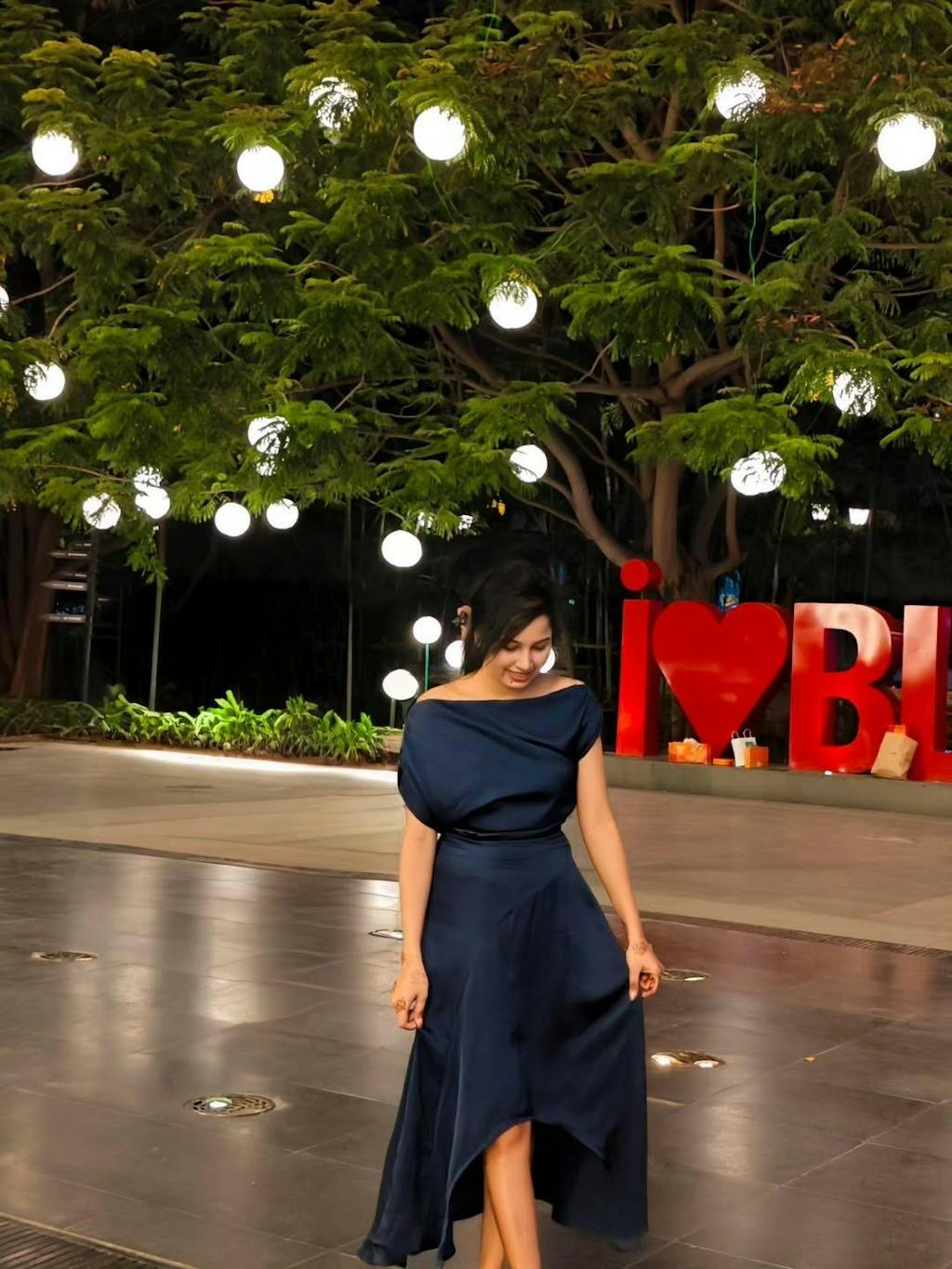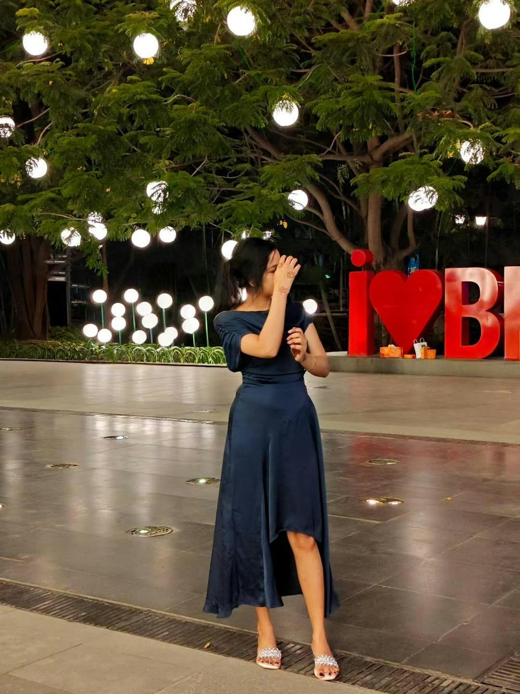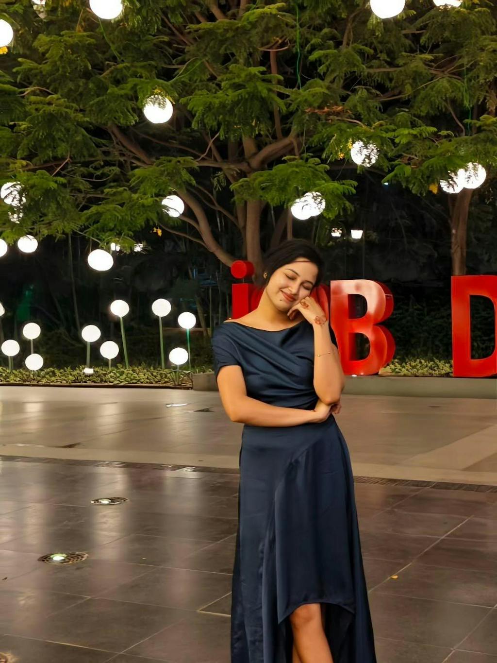This asymmetrical dress is elegance redefined fluid drape, sculpted boat neck, and an off-shoulder cut that feels like poetry in motion. The rich navy satin gives it that luxe edge, while the high-low hem adds a bit of flirt to the flow.