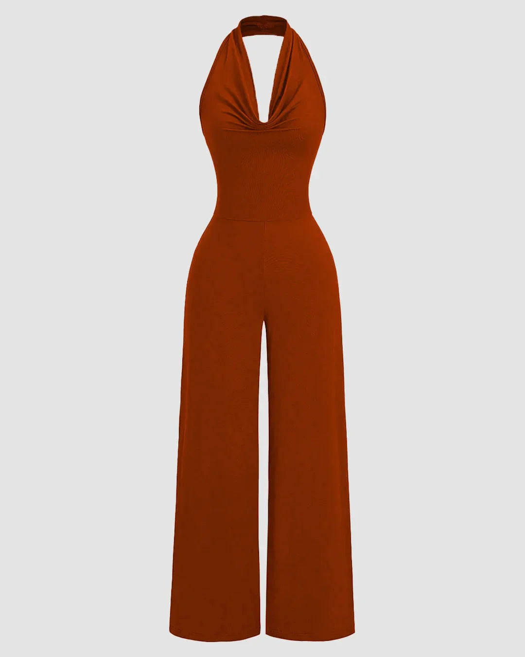 Halter Cowl Neck Wide Leg Jumpsuit in Brick