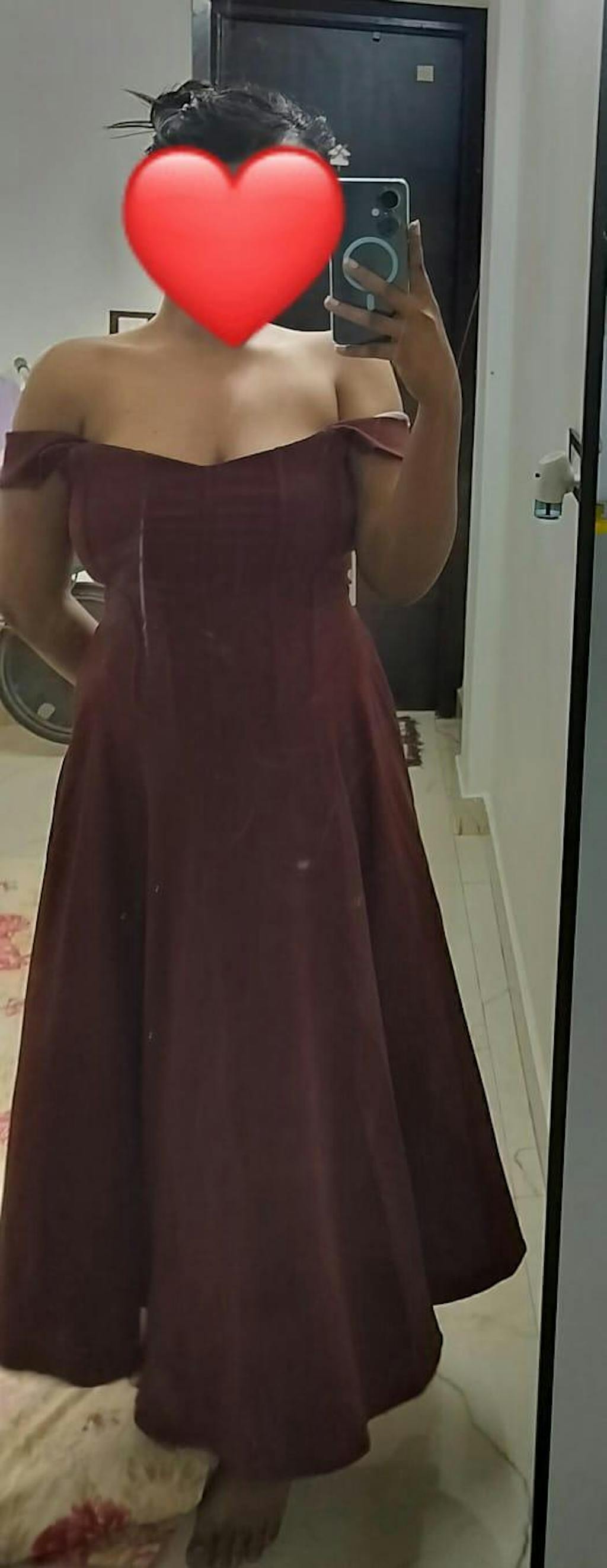 Introducing our Maroon Faux Fishbone Design Romantic One-Shoulder Dress. This one-shoulder dress is all about vintage drama with modern ease. Featuring a sculpted corset-inspired bodice and flared A-line hem, it hugs where it should and flows where it flatters.