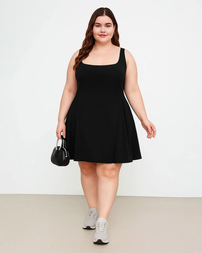 Black Fit and Flare Square Neck Mini Dress Curve & Plus