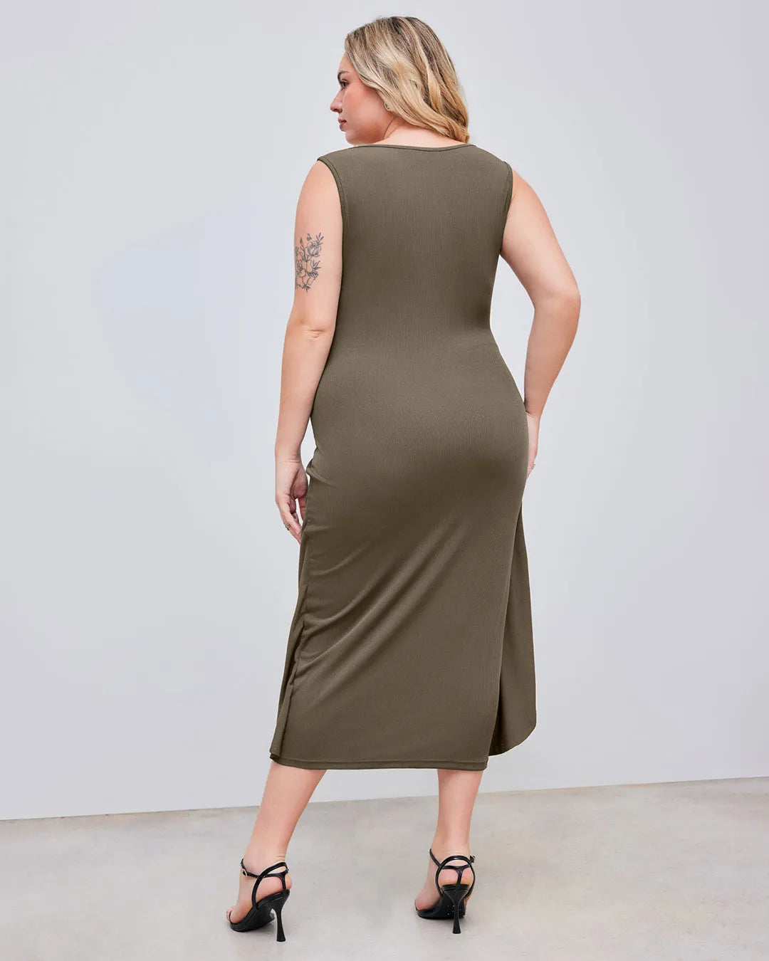 Square Neck Solid Twist Knotted Brown Maxi Dress Curve & Plus