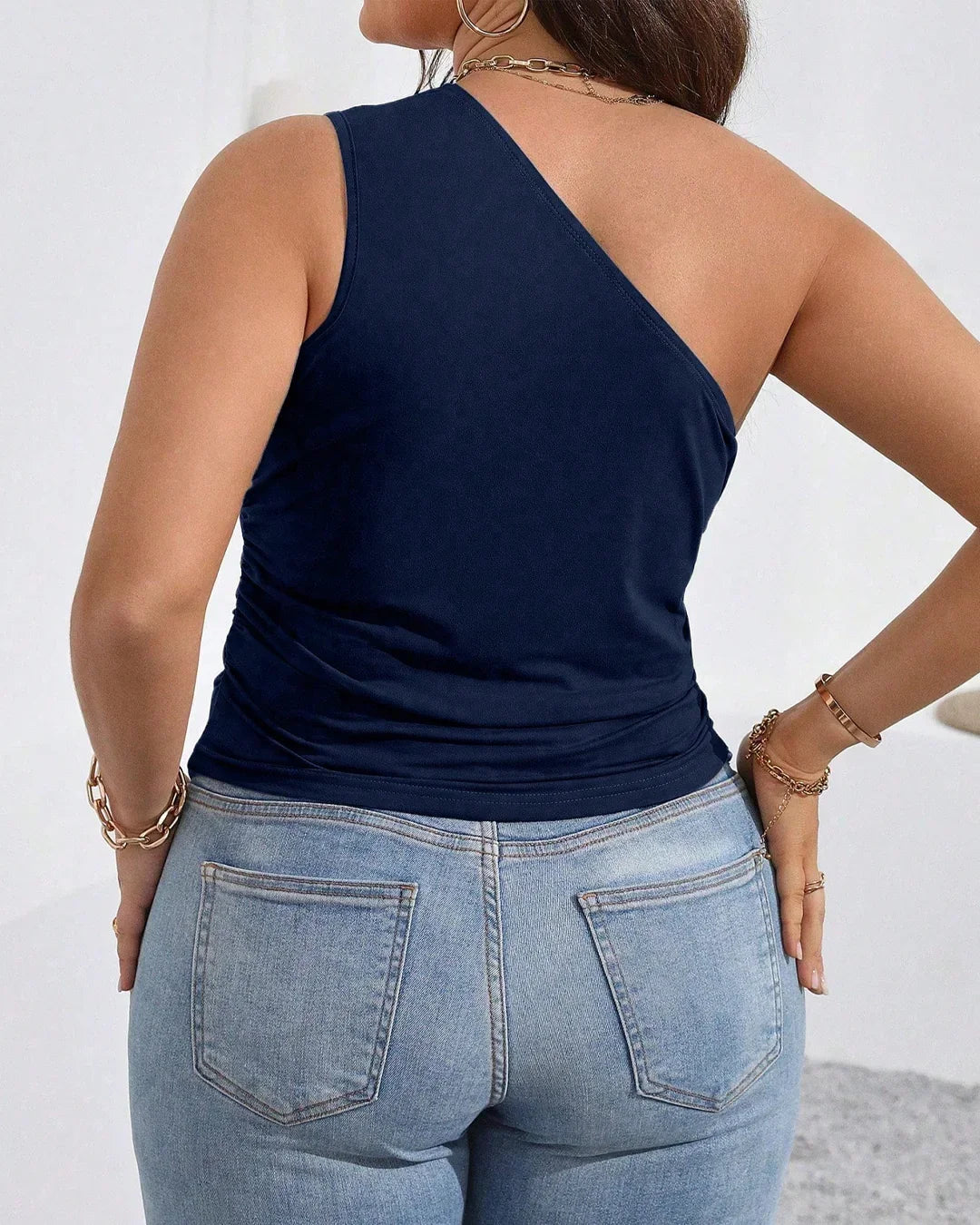 This asymmetrical top comes with a sleek one shoulder neckline that instantly elevates your look. The ruched detailing adds shape and creates a flattering fit, while the navy blue color keeps the style classic and easy to pair with almost anything. The asymmetrical hem gives it a modern twist, making the top stand out without feeling too bold.