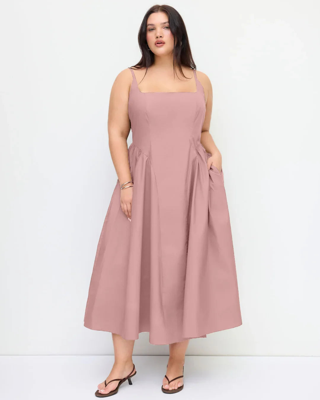You can wear this Cami Dress in Pink for brunches, weekend outings, vacations, or casual evening plans. The airy drape and roomy flare make it ideal for curve and plus bodies, offering comfort with a refined finish. Pair it with flats for a soft daytime mood or switch to heels for a more elevated look.