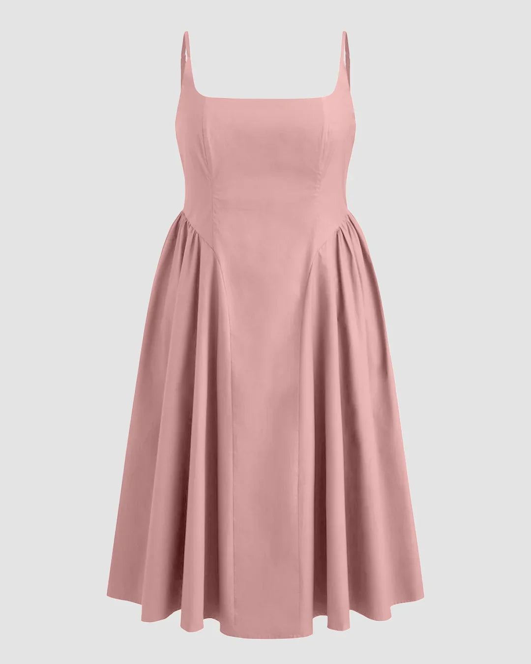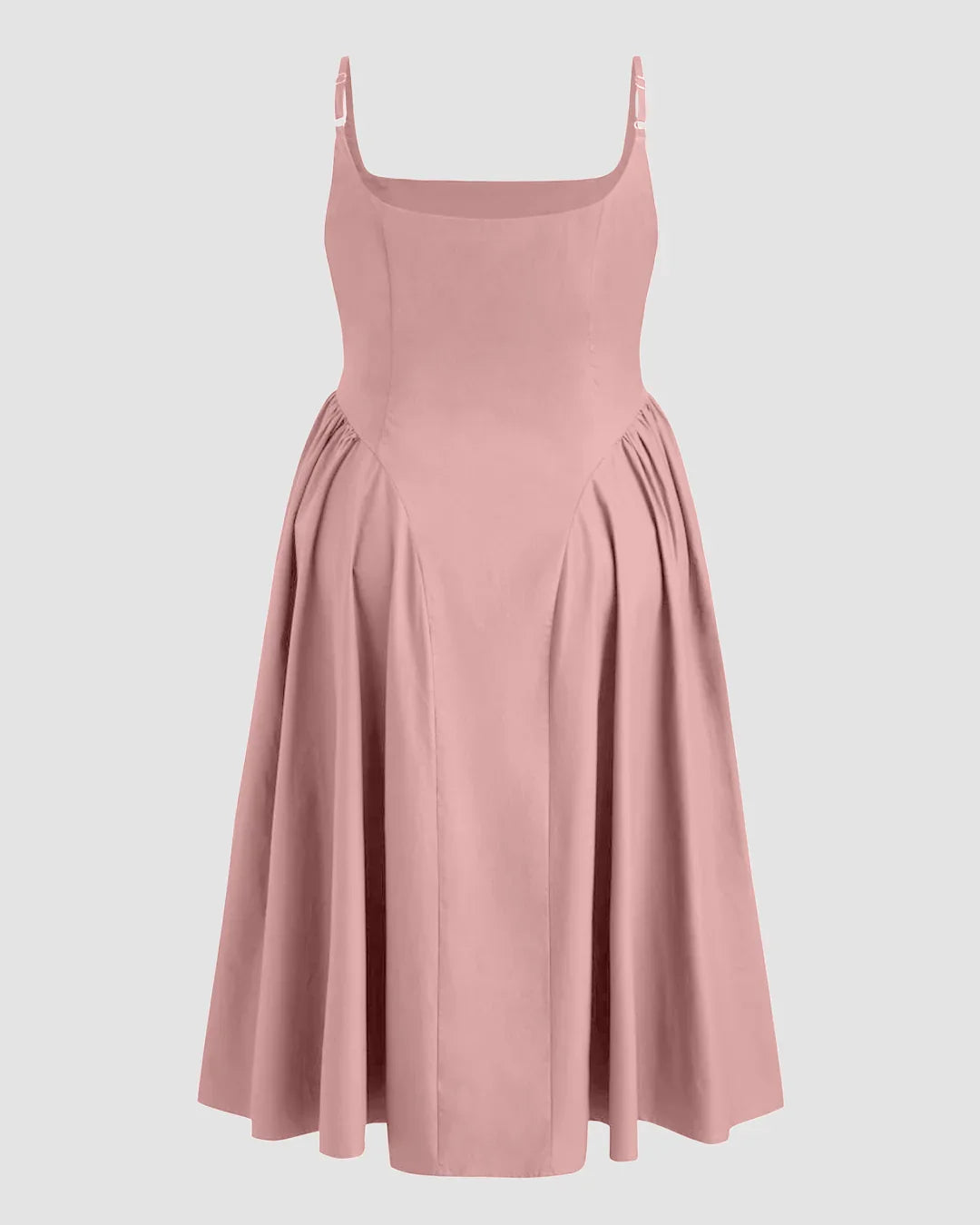 U Neckline Ruched Ruffle Hem Maxi Cami Dress in Pink Curve and Plus brings a soft, flowy silhouette with a flattering fitted top that feels feminine and effortless. This Cami Dress in Pink features a smooth U neckline, thin straps, and a gently ruched waist that shapes beautifully without feeling tight. The long, flared hem adds easy movement and gives the dress a relaxed yet polished look. The pink tone adds a fresh, romantic vibe, while the lightweight fabric keeps it comfortable for all day wear.