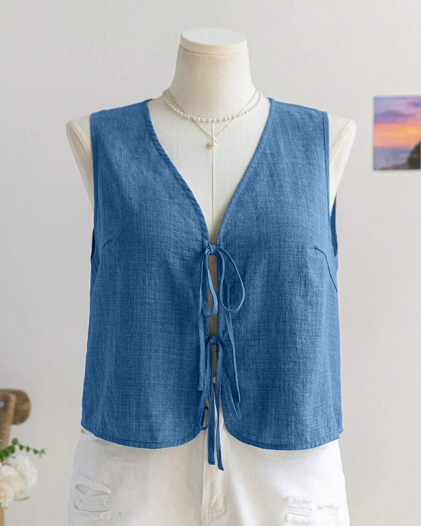 V-Neck Regular Fit Straight Hem Solid Sleeveless Top Curve & Plus in Light Blue