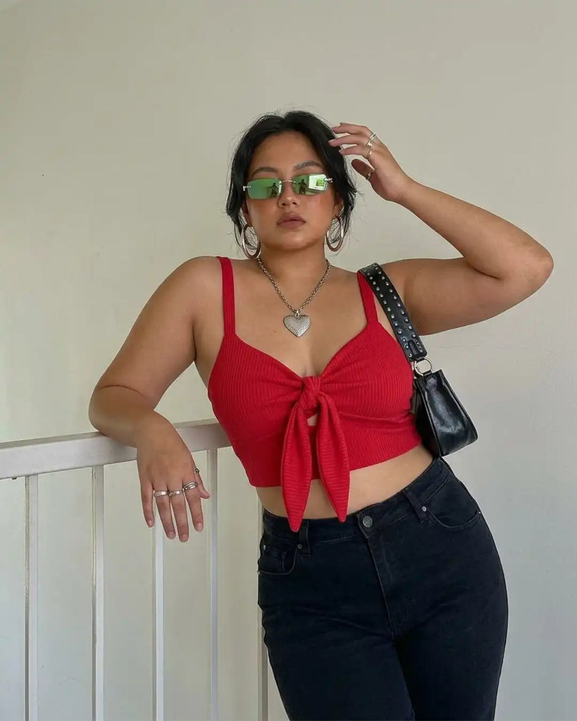 Tie Front Bralette Style Crop Top Curve and Plus in Red